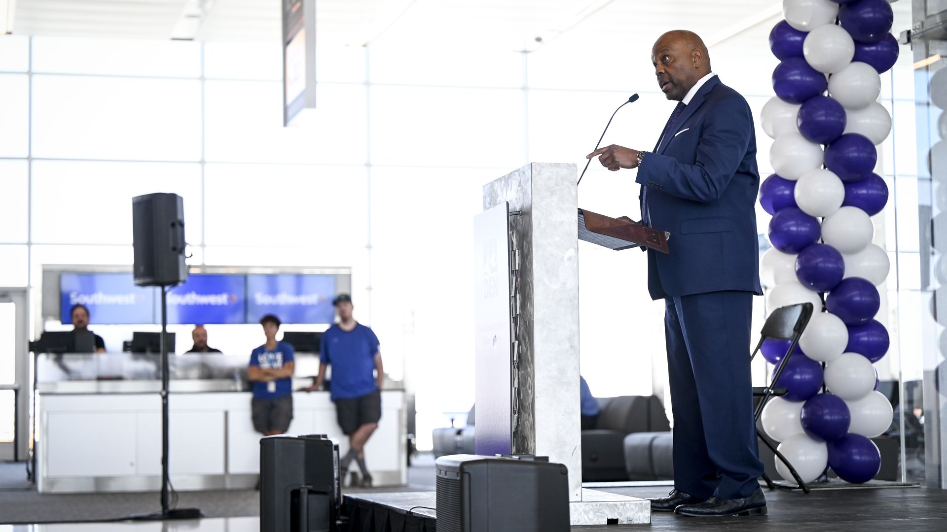 Phil Washington speaks during a ceremony to unveil a new concourse at Denver International Airport in May. Photo: AAron Ontiveroz/The Denver Post via Getty Images