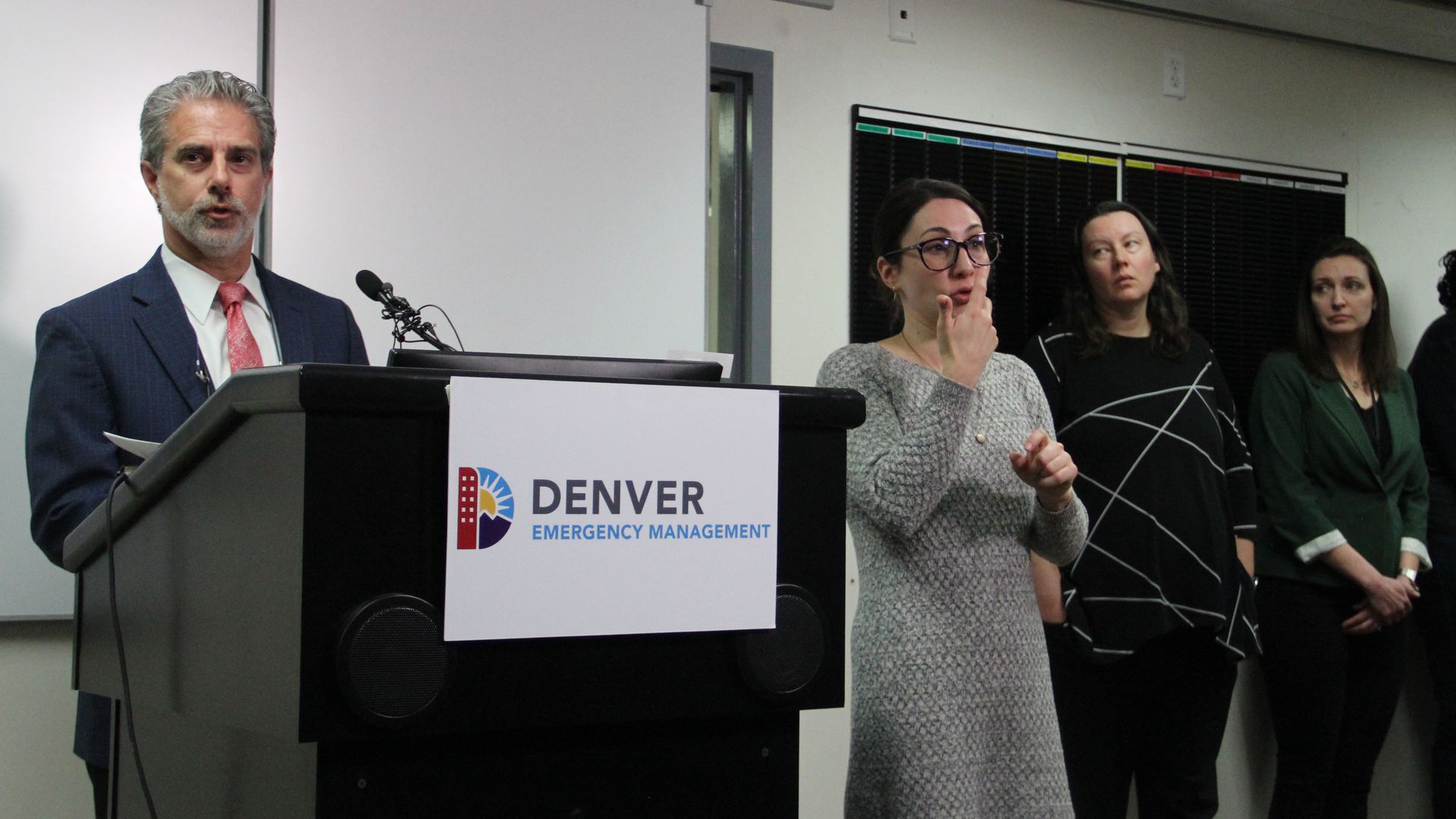 Evan Dreyer, Mayor Michael Hancock's deputy chief of staff, stands inside the Emergency Operations Center inside the City and County Building on Thursday, Dec. 8. Photo: Esteban L. Hernandez/Axios