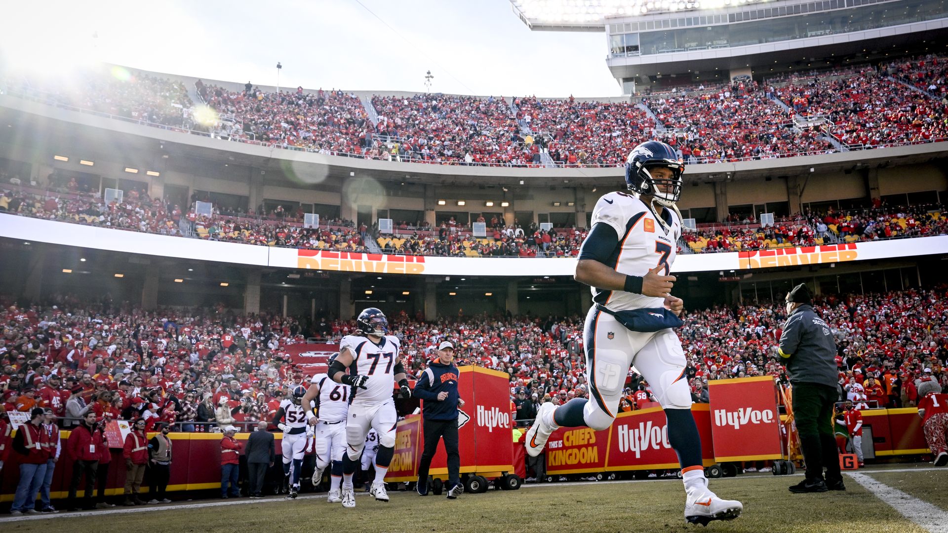 Denver Broncos quarterback Russell Wilson takes the field at Arrowhead Stadium in Kansas City on Jan. 1. Photo: AAron Ontiveroz/MediaNews Group/The Denver Post via Getty Images