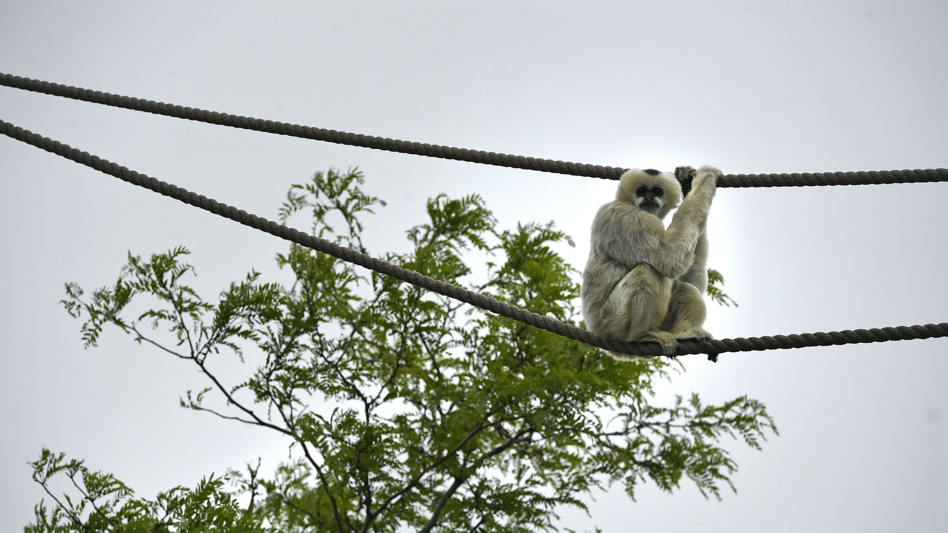 A gibbon perches on a rope at the Denver Zoo in 2018. Photo: Helen H. Richardson/The Denver Post via Getty Images