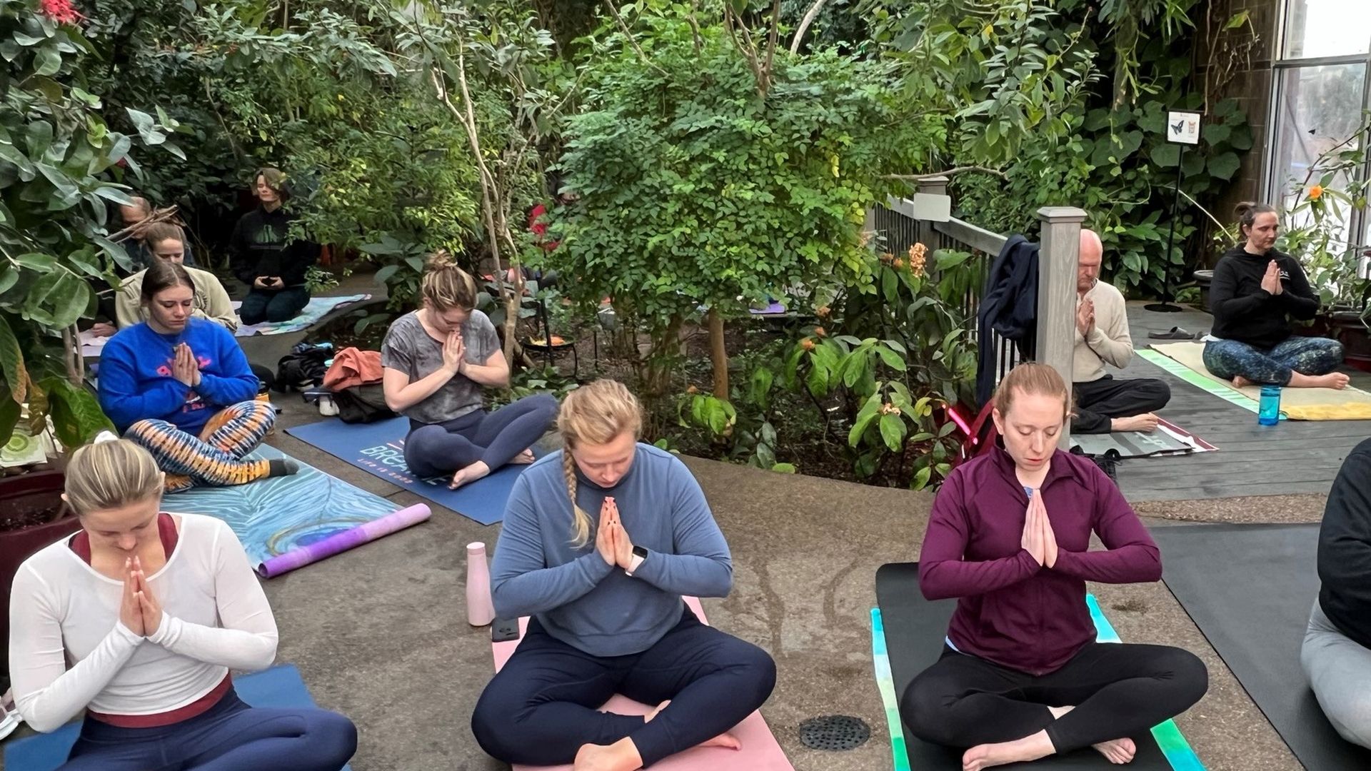 Practice yoga with butterflies at the Butterfly Pavilion