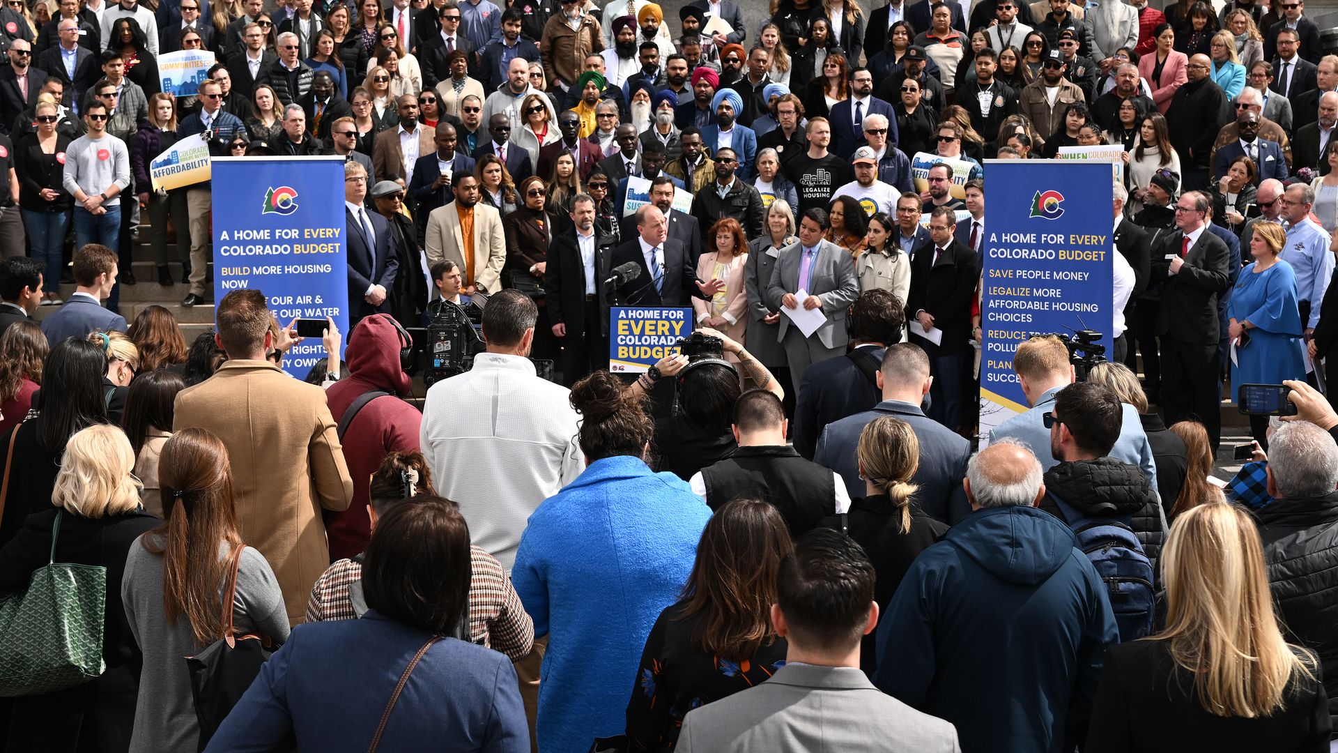 Gov. Jared Polis and supporters introduced a land use bill with great fanfare March 22 at the state Capitol. Photo: RJ Sangosti/Denver Post via Getty Images