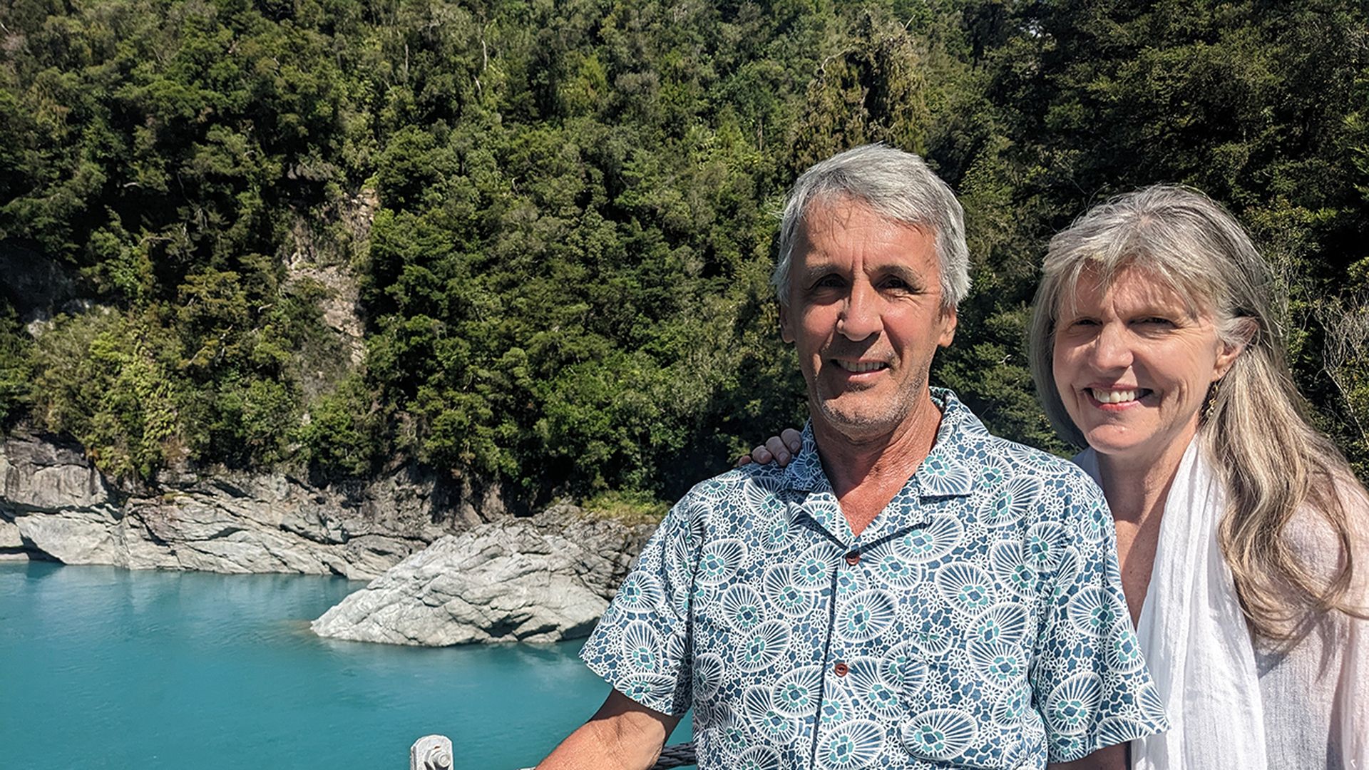 Eric and Shanti Kloor at Hokitika Gorge in New Zealand. Photo: Courtesy of Eric and Shanti Kloor