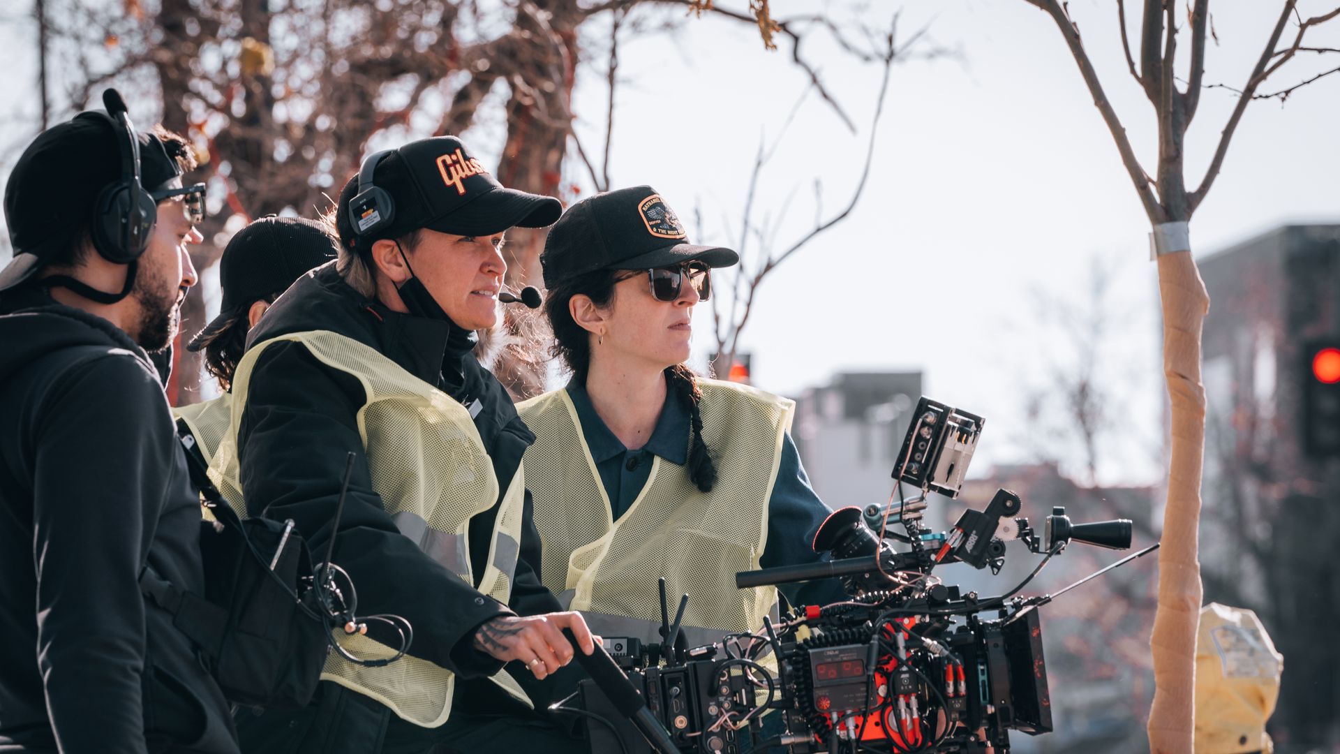 Director Taylor McFadden (at right, in sunglasses) during the filming of "Lovers" in Denver. Photo: Courtesy of Devon Wycoff.
