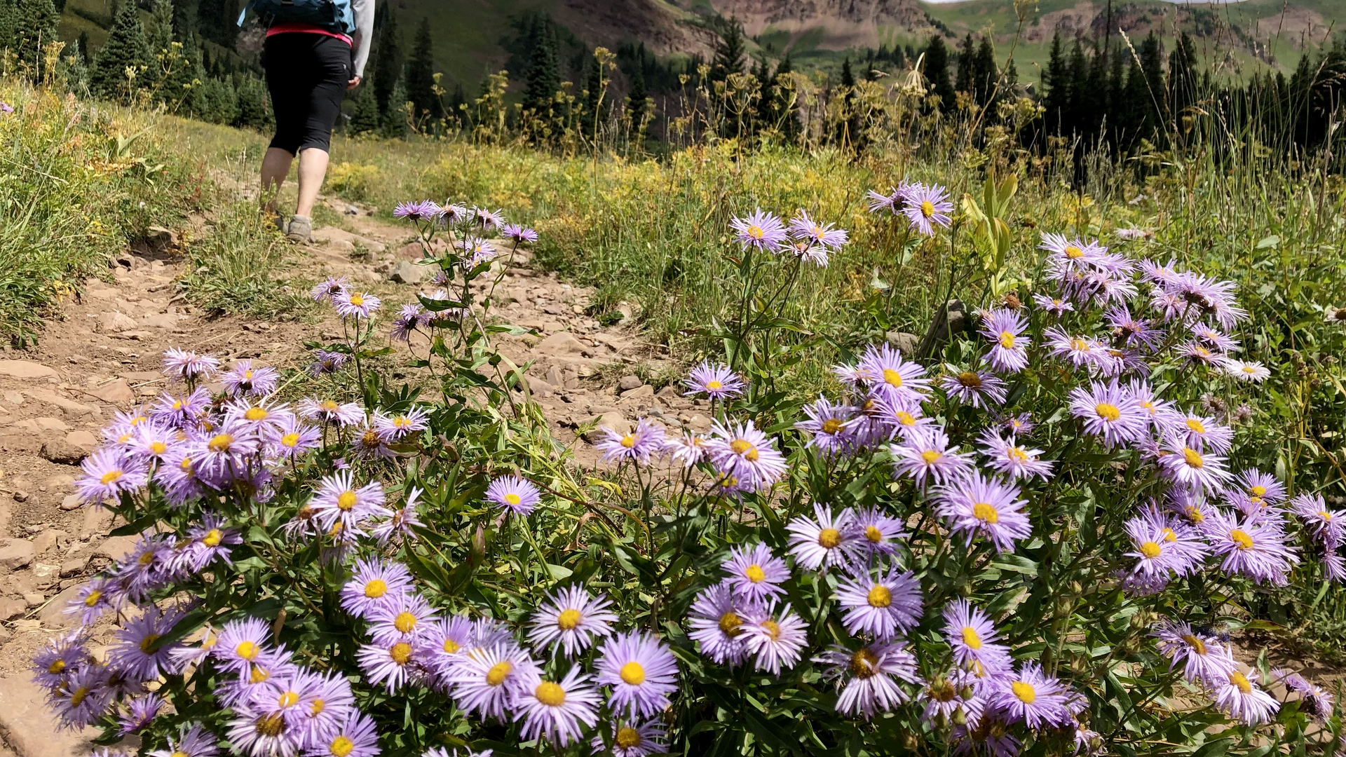 Aster flowers on a hike near Rustler's Gulch outside Crested Butte in 2021. Photo: John Frank/Axios