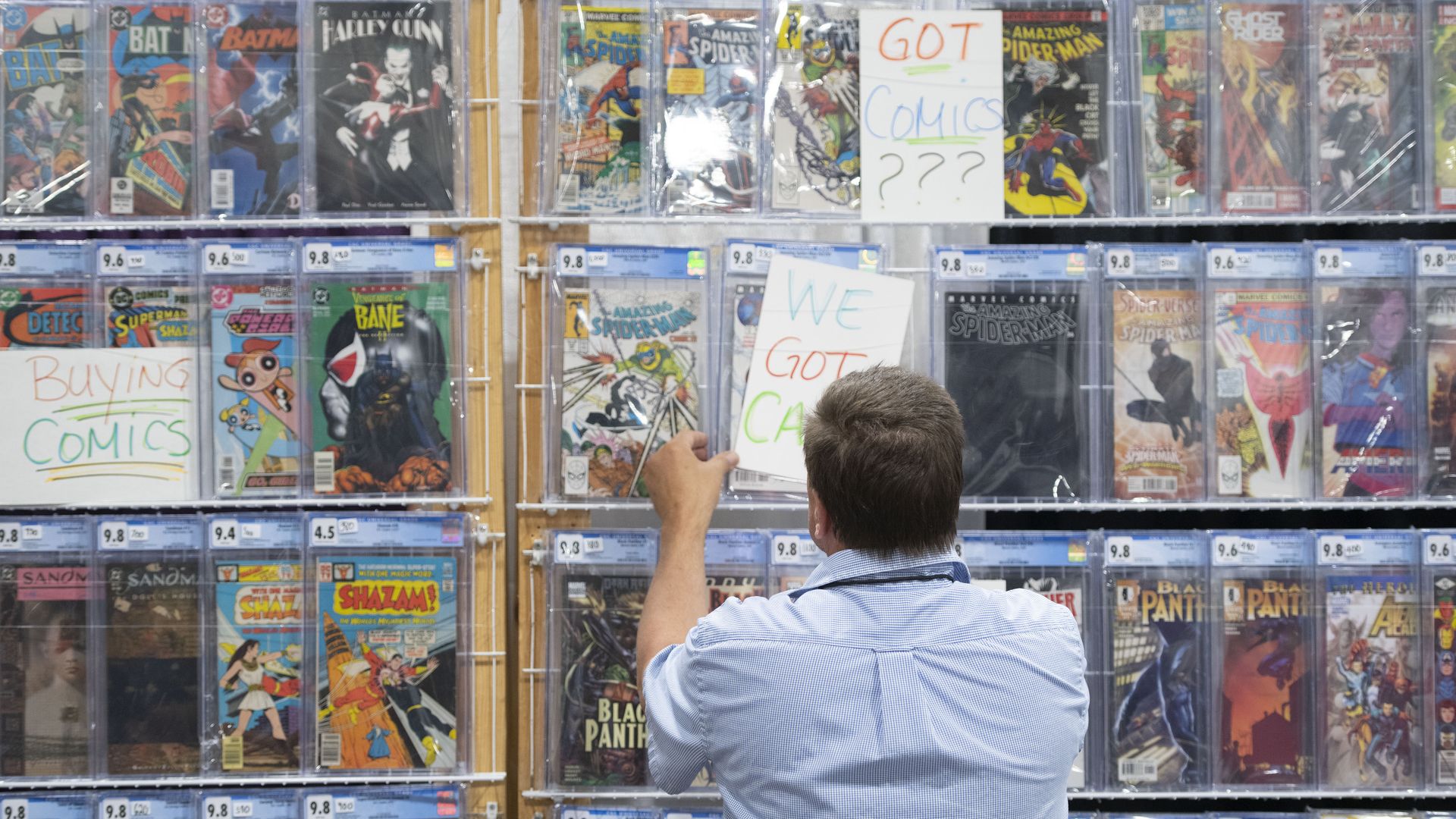 A comic book vendor at Fan Expo in Denver. Photo: Thomas Cooper/Getty Images