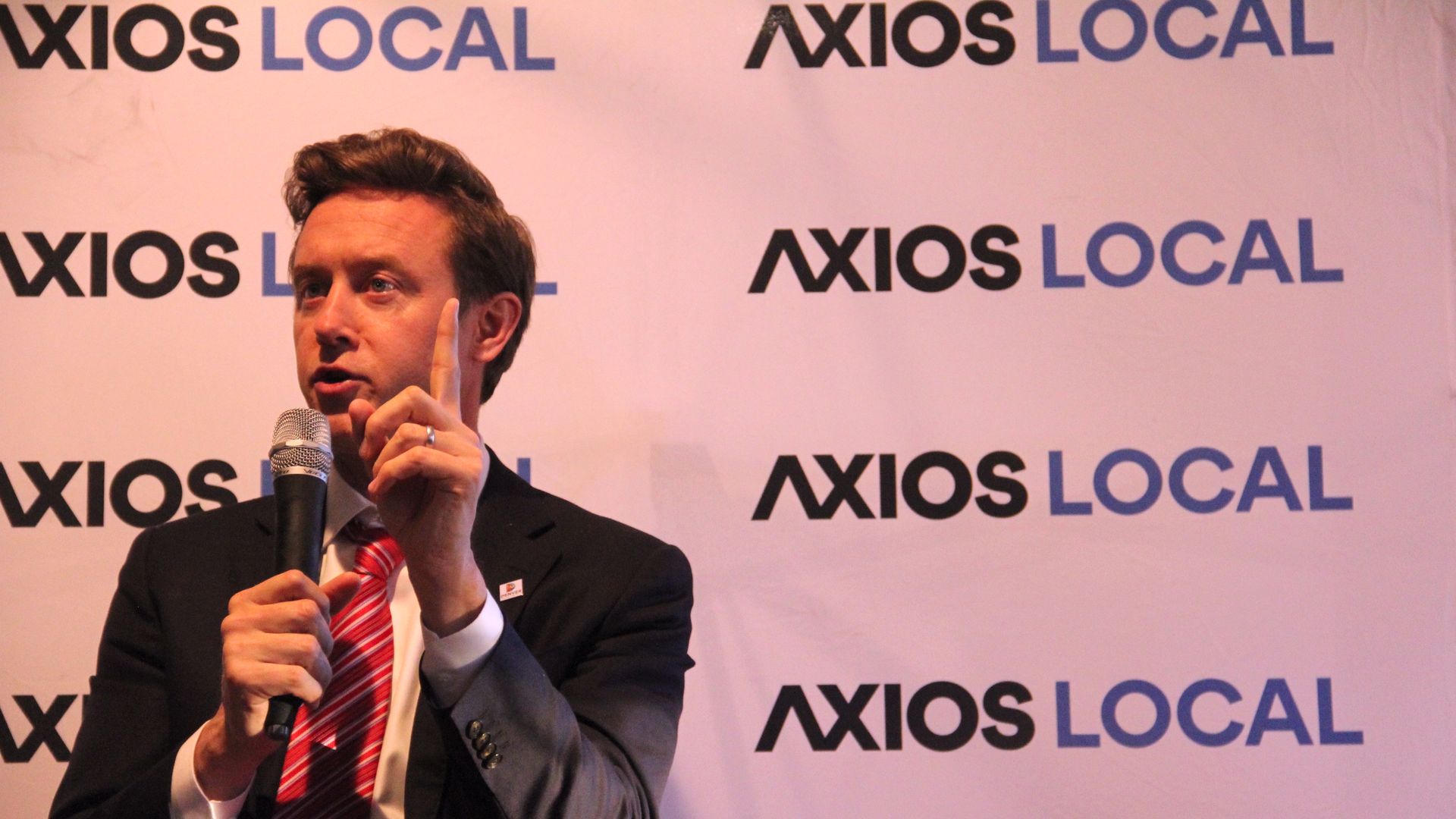 Mayor Mike Johnston speaks during an Axios Denver event on Thursday at DNVR Bar in Denver. Photo: Esteban L. Hernandez/Axios