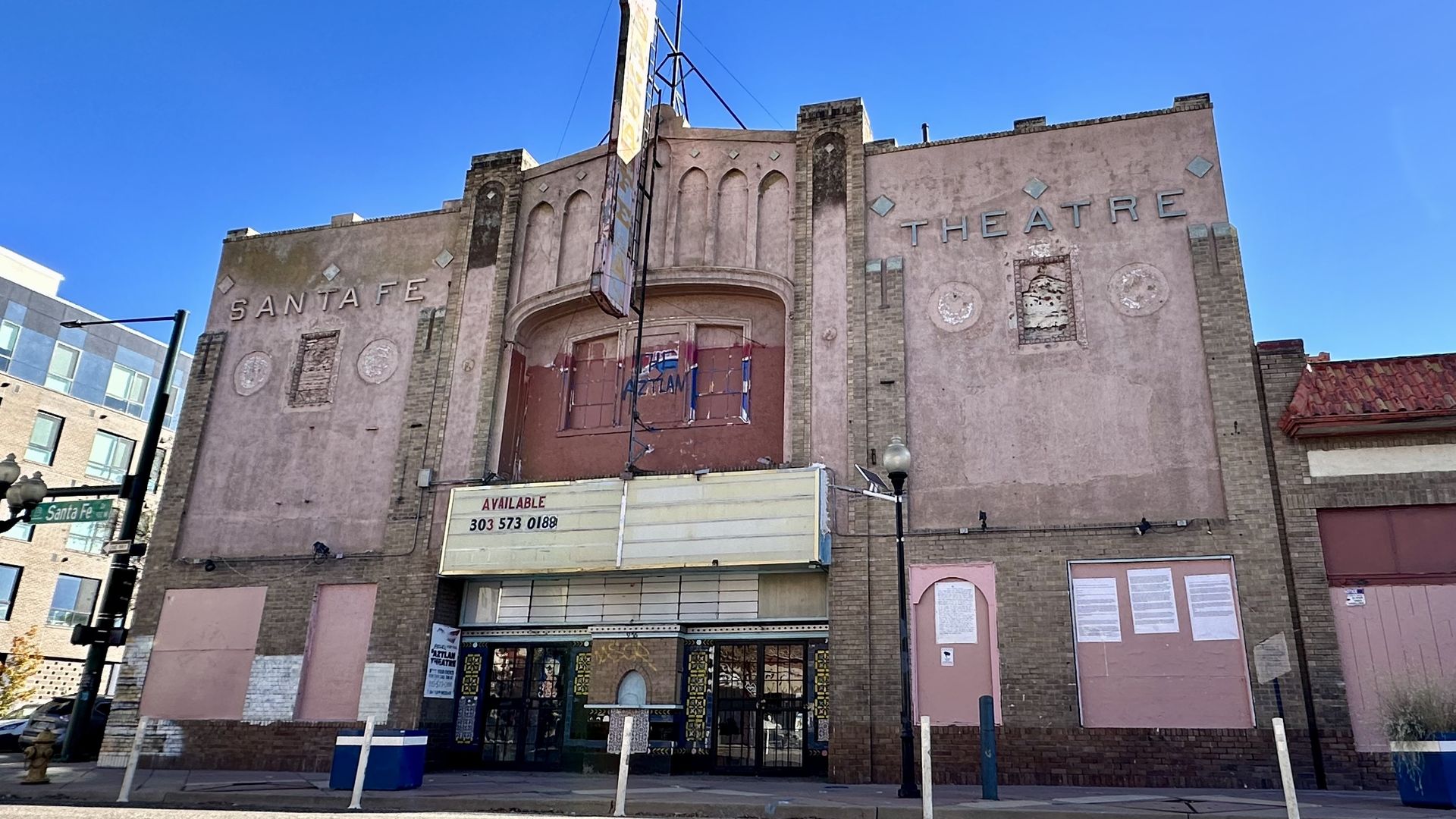 The owner of Denver's historic Aztlan Theatre on Santa Fe Drive is closing the curtain and putting up a "for sale" sign, Axios Denver has learned.