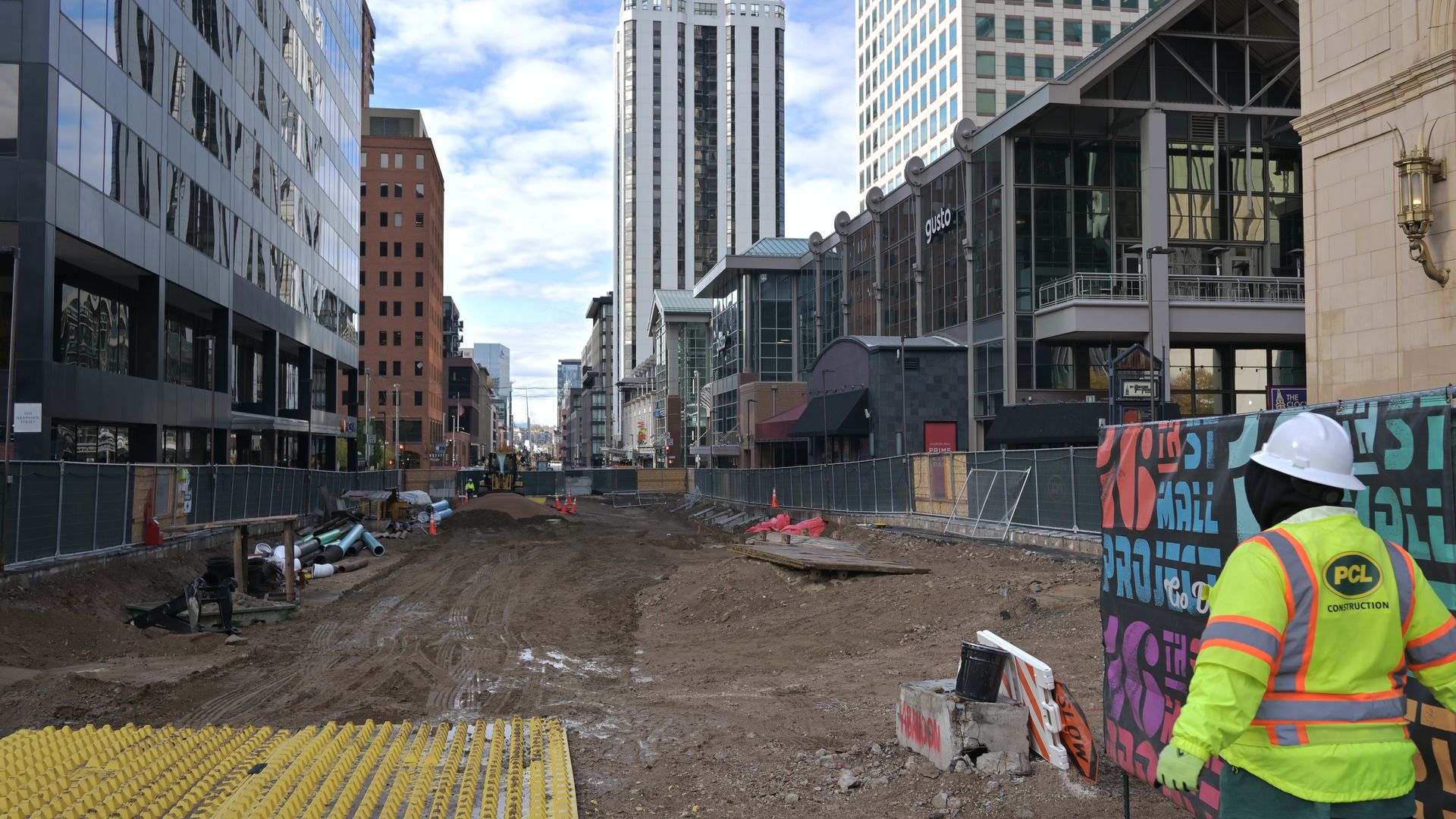 Zoom out: Just two blocks away on the 16th Street Mall, businesses are also struggling to survive. Much of the 17.5-block strip is unrecognizable amid a major infrastructure overhaul that's fallen behind schedule.