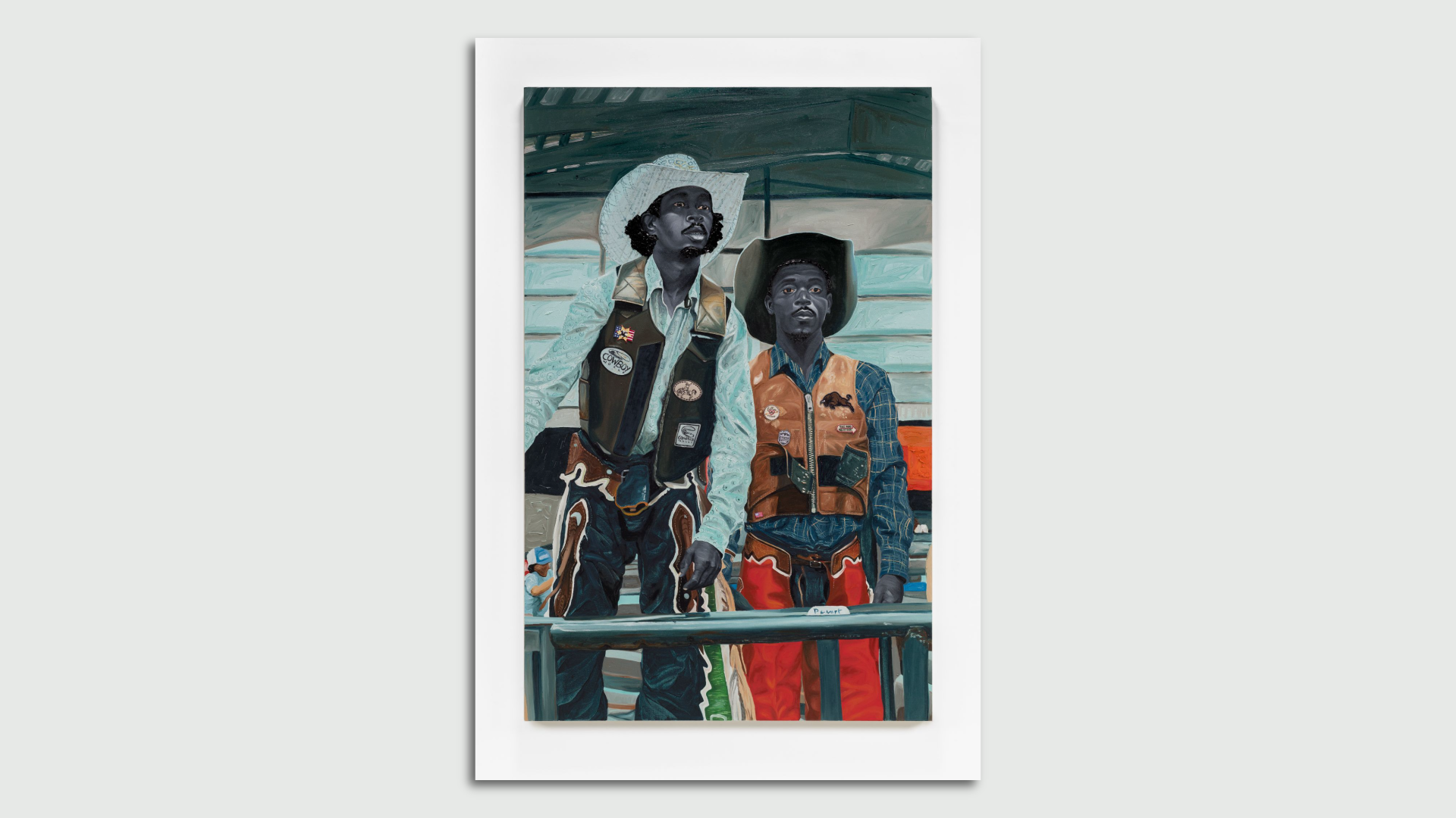 "Rodeo Boys" by Otis Kwame Quaicoe (2022), oil and fabric applique on canvas. Photo: Courtesy of the artist and Almine Rech; photographed by Hugard & Vanoverschelde