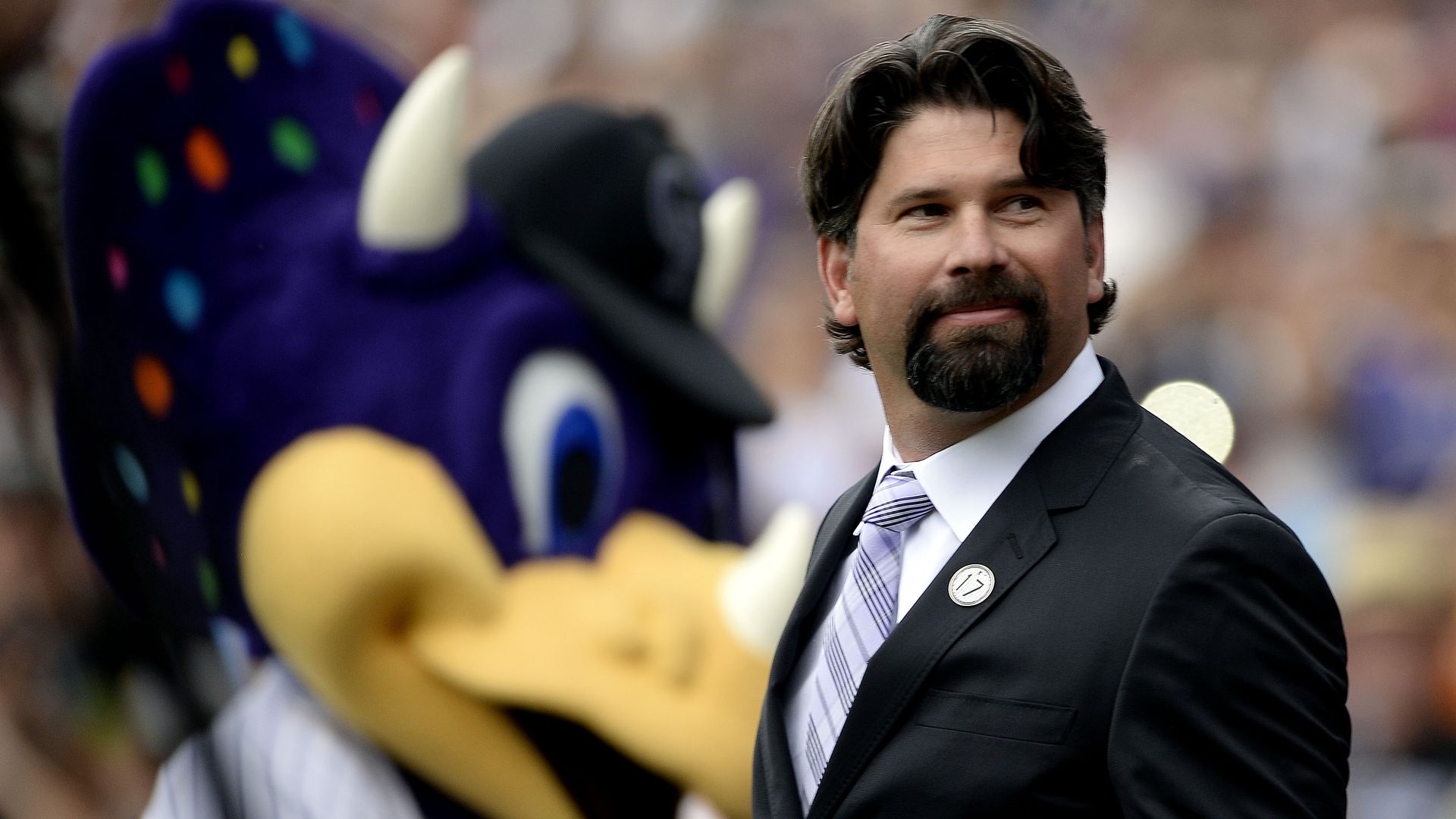 Todd Helton during a retirement ceremony for his number 17 in 2014. Photo: AAron Ontiveroz/The Denver Post via Getty Images