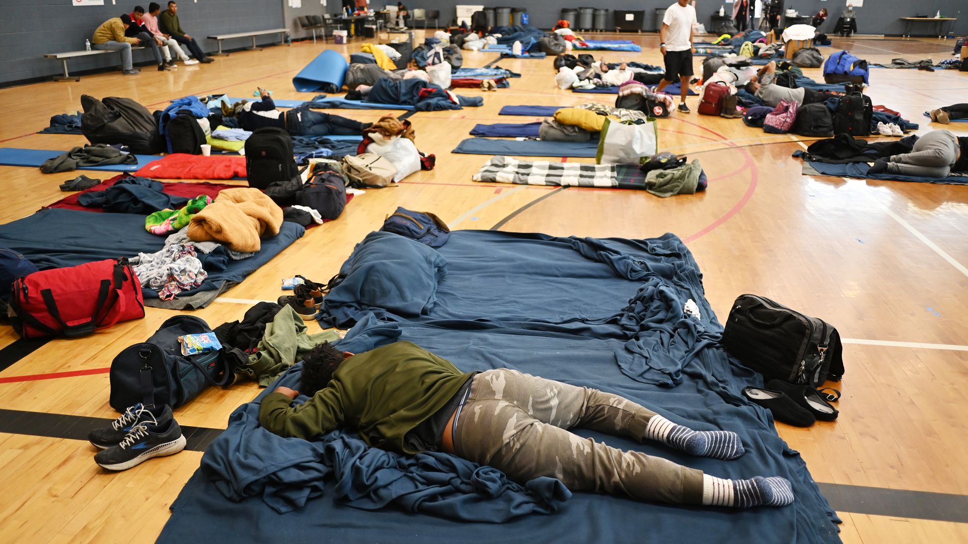 Migrants sleep in a makeshift shelter last January at an undisclosed location in Denver. Photo: Hyoung Chang/The Denver Post via Getty Images