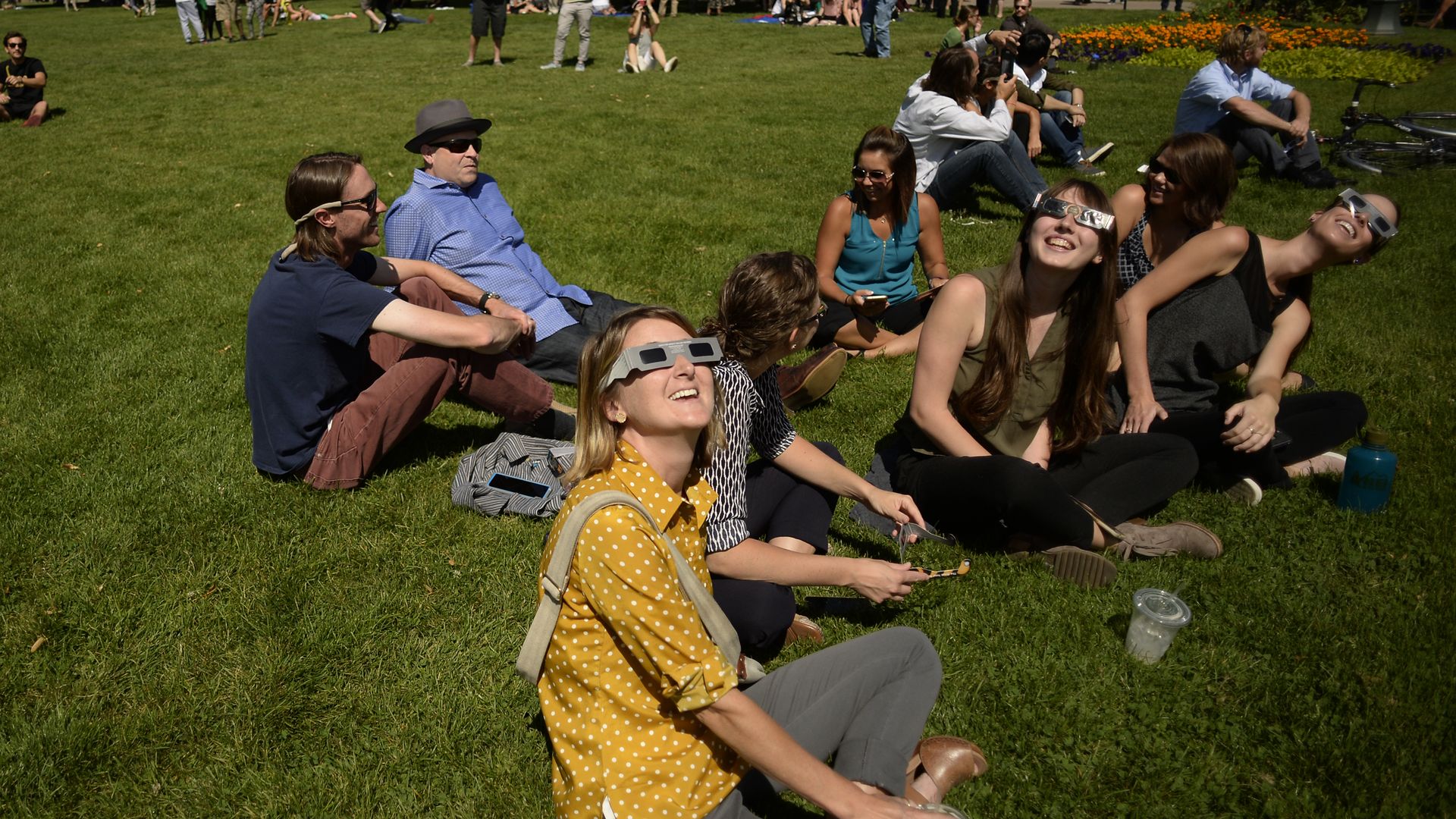 People gather to watch the solar eclipse at Denver's Civic Center Park in 2017. Photo: Joe Amon/The Denver Post via Getty Images
