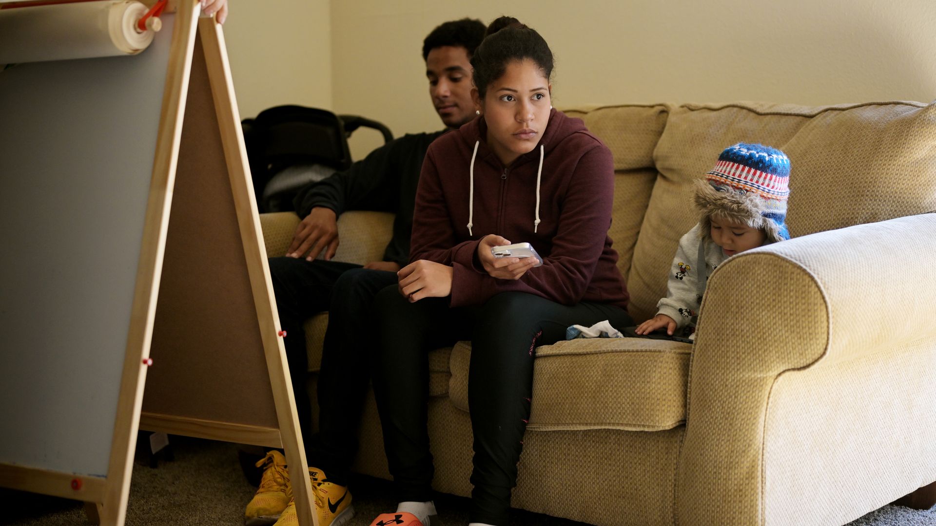 A Venezuelan immigrant family pictured in a city-funded apartment on Feb. 14. Photo: Hyoung Chang/The Denver Post via Getty Images
