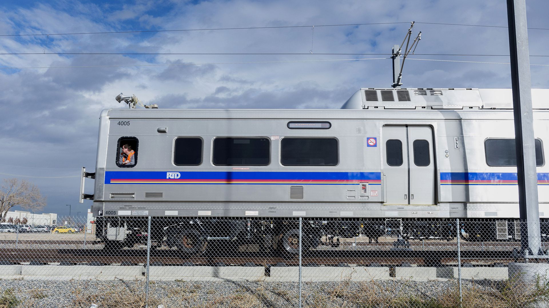 An engineer runs testing on an RTD commuter trail line in Denver in 2015. Photo: Greg Mionske/Bloomberg via Getty Images
