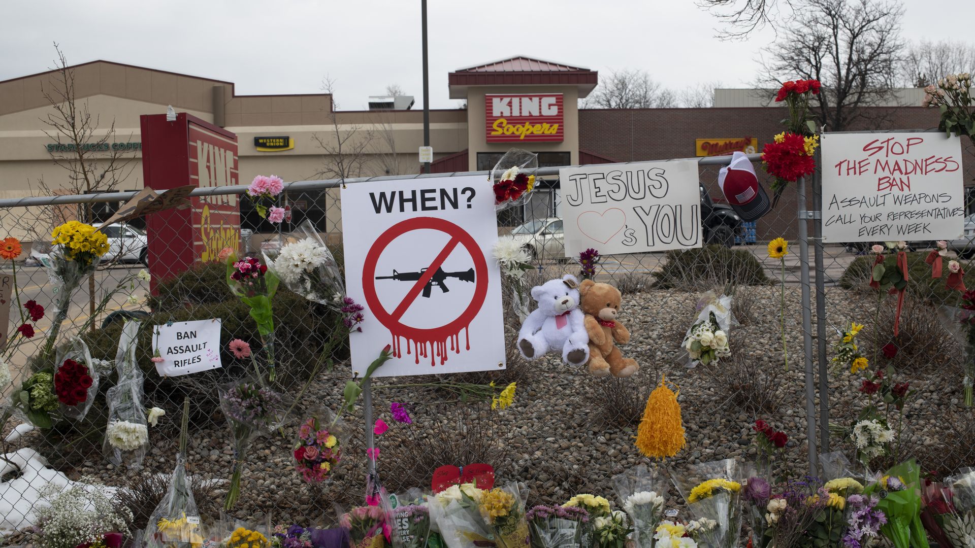 The memorial at the King Soopers on Table Mesa in Boulder pictured on March 24, 2021. Photo: Rachel Woolf for The Washington Post via Getty Images