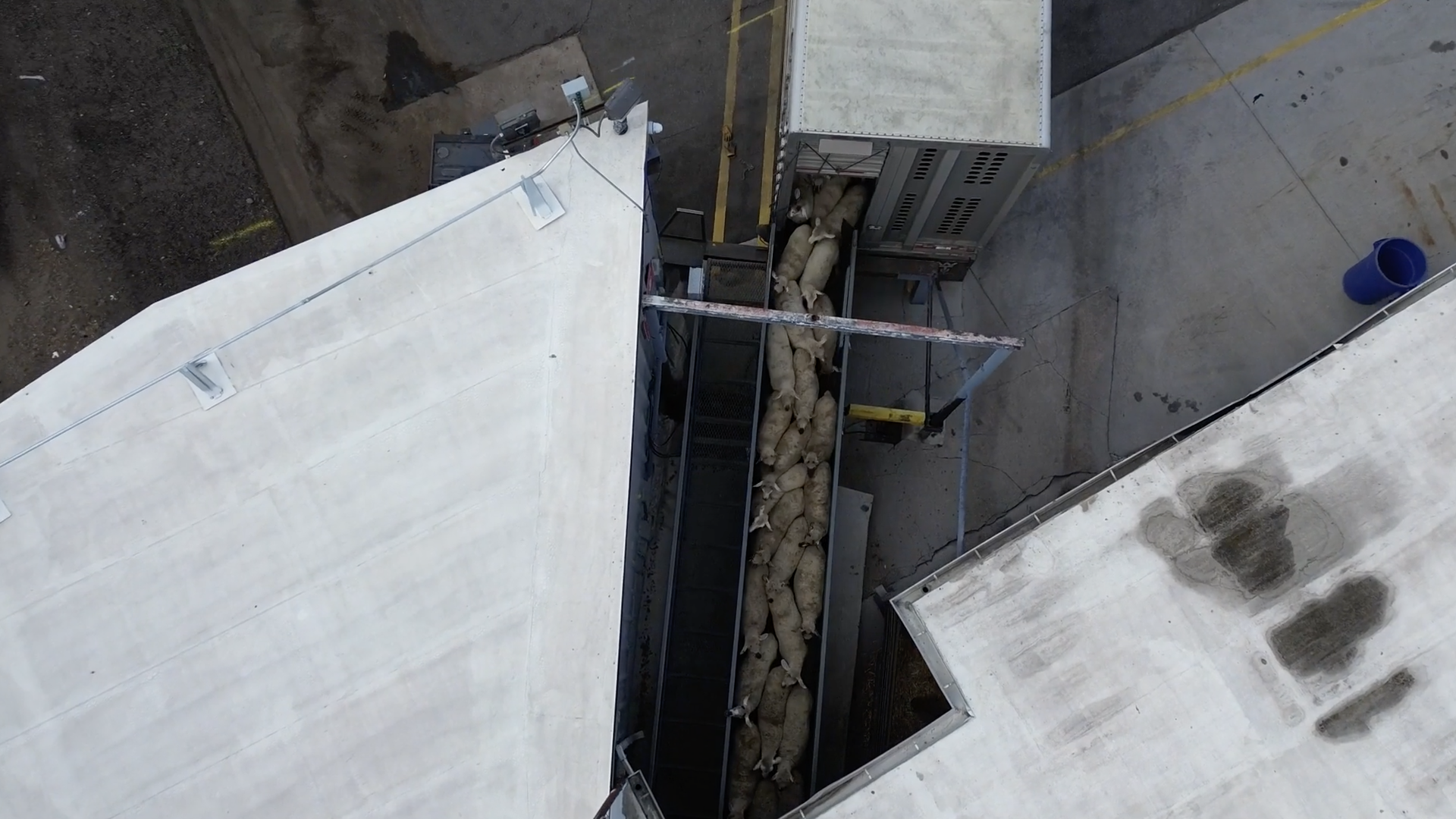 An arial image of lambs unloading at the Superior Farms plant in Denver. Photo: Courtesy of Direct Action Everywhere