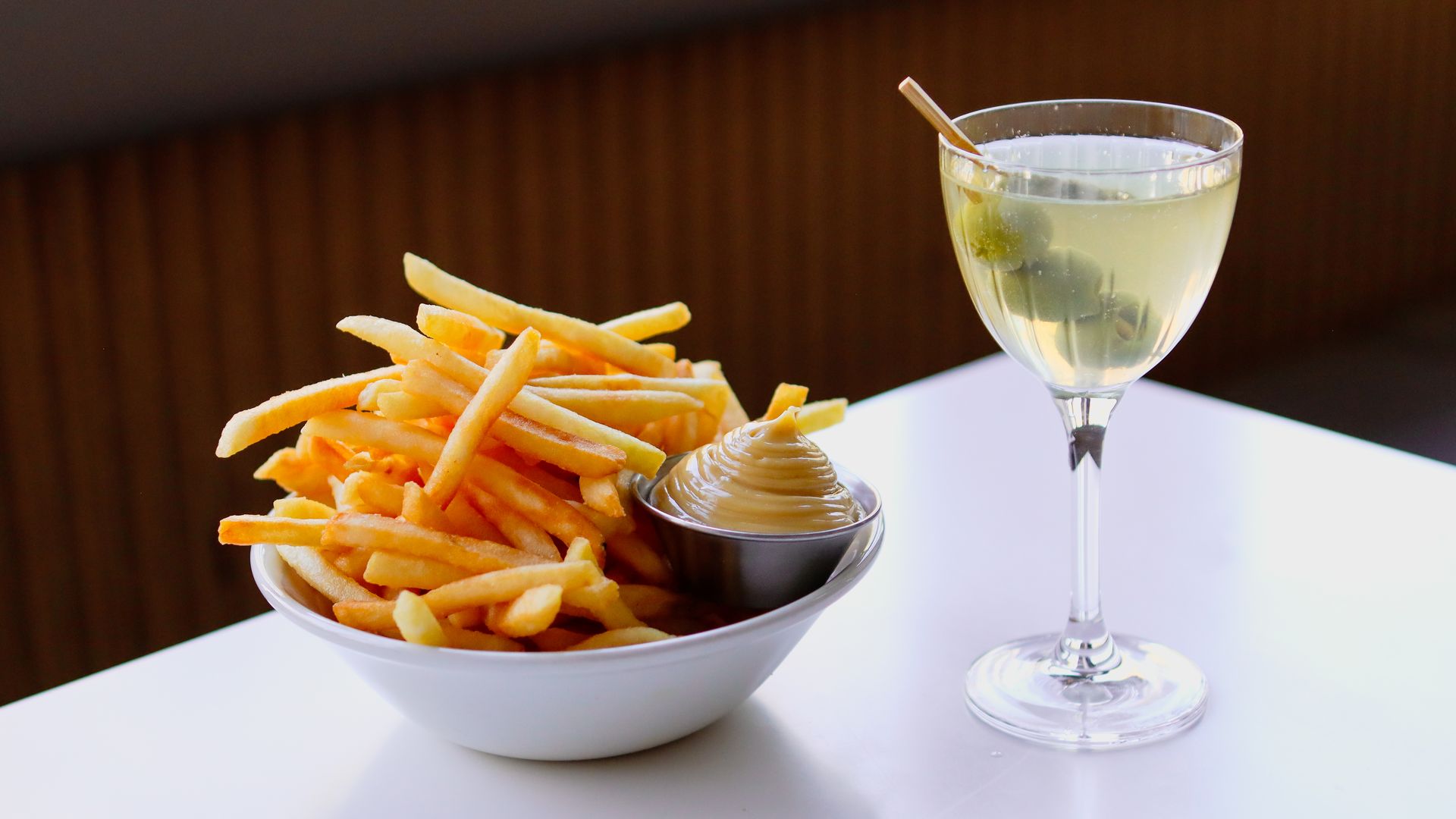 Point Easy offers fries and a martini for $14 during happy hour. Photo: Courtesy of Hard Knock PR