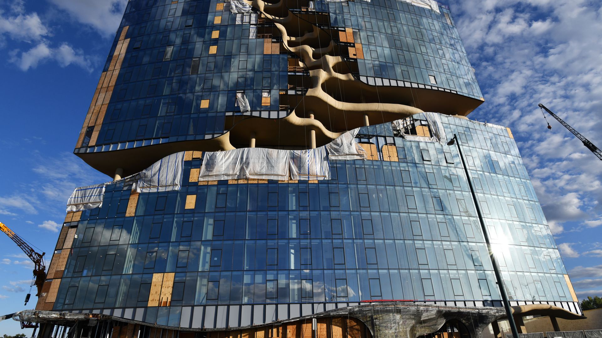 One River North in Denver's River North Art District, pictured under construction in 2023, opened in April 2024 and has yet to fill its ground-floor retail spaces. Photo: Hyoung Chang/The Denver Post via Getty Images