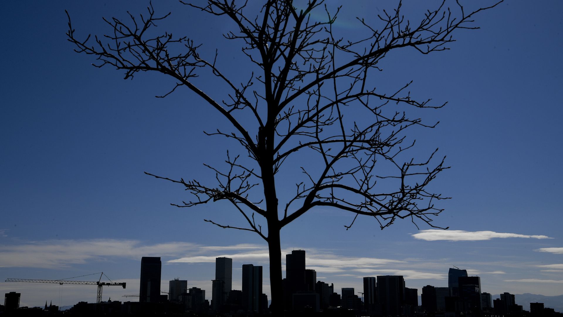 A tree grows with Denver's skyline in the distance in 2018. Photo: AAron Ontiveroz/The Denver Post via Getty Images