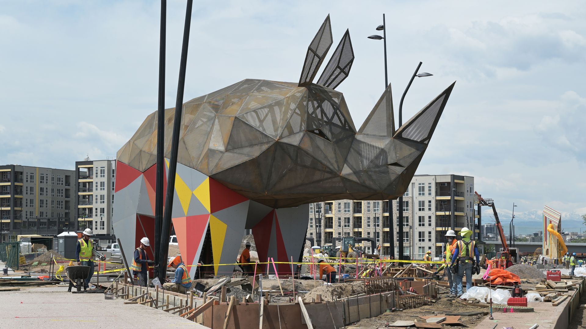 The 30-foot-tall rhino installation site at Denargo Market development in Denver last Wednesday. Photo: Hyoung Chang/The Denver Post via Getty Images