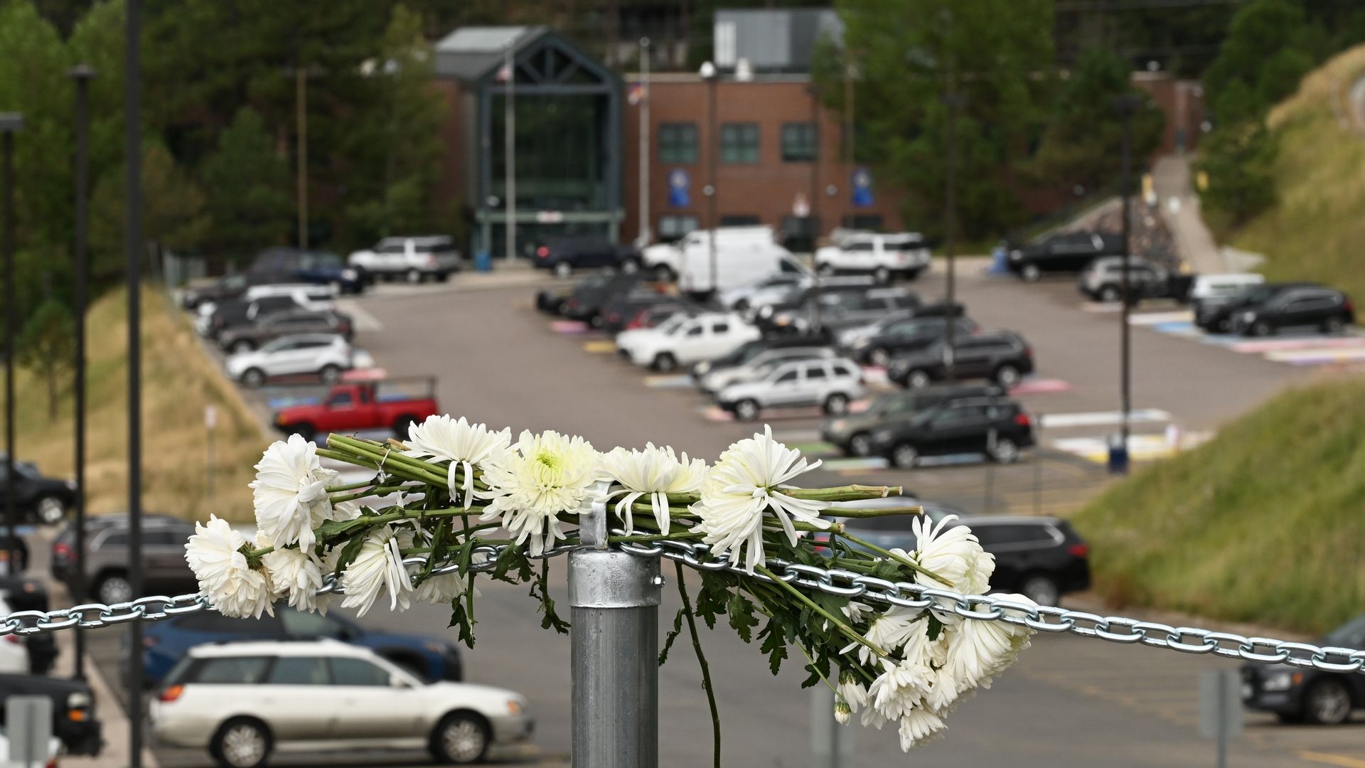 Flowers are placed on a fence outside Evergreen High School in Colorado. Photo: RJ Sangosti/MediaNews Group/The Denver Post via Getty Images