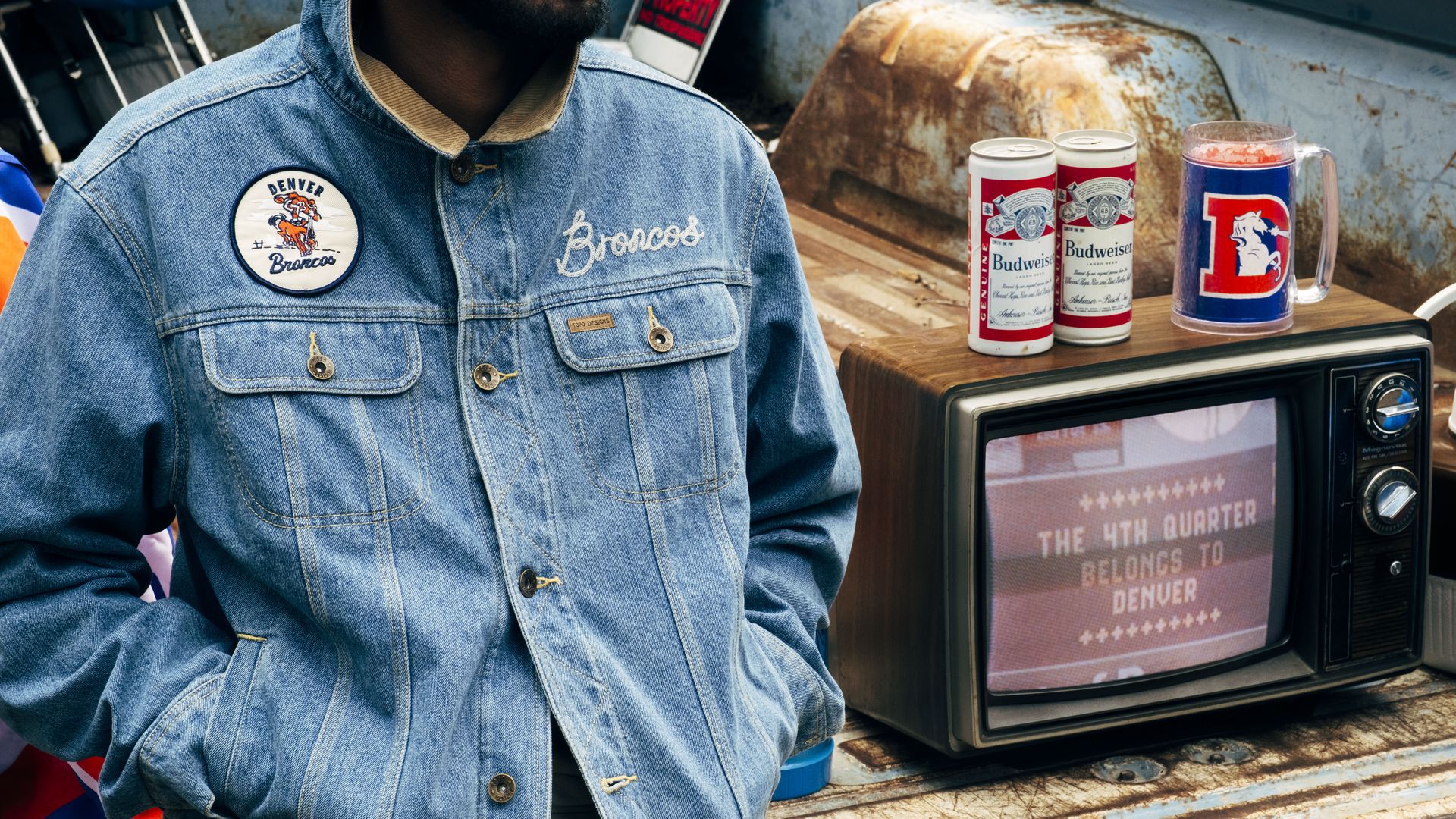 The Topo Designs x Denver Broncos denim jacket. Photo: Courtesy of Topo Designs
