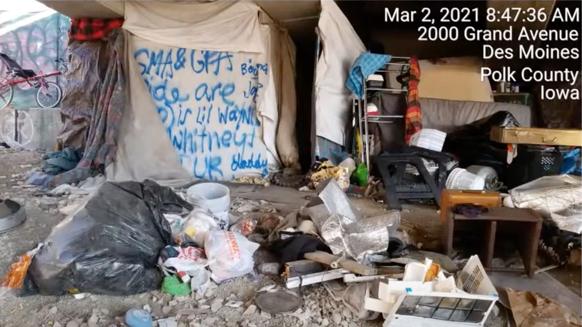 Encampments under bridges like this one on Grand Avenue jeopardize public safety, city officials say. Photo courtesy of the city of Des Moines