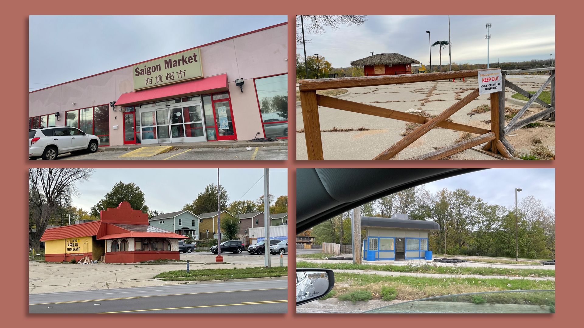A few of the closed businesses or vacant lots along Douglas Avenue. Photos: Jason Clayworth/Axios