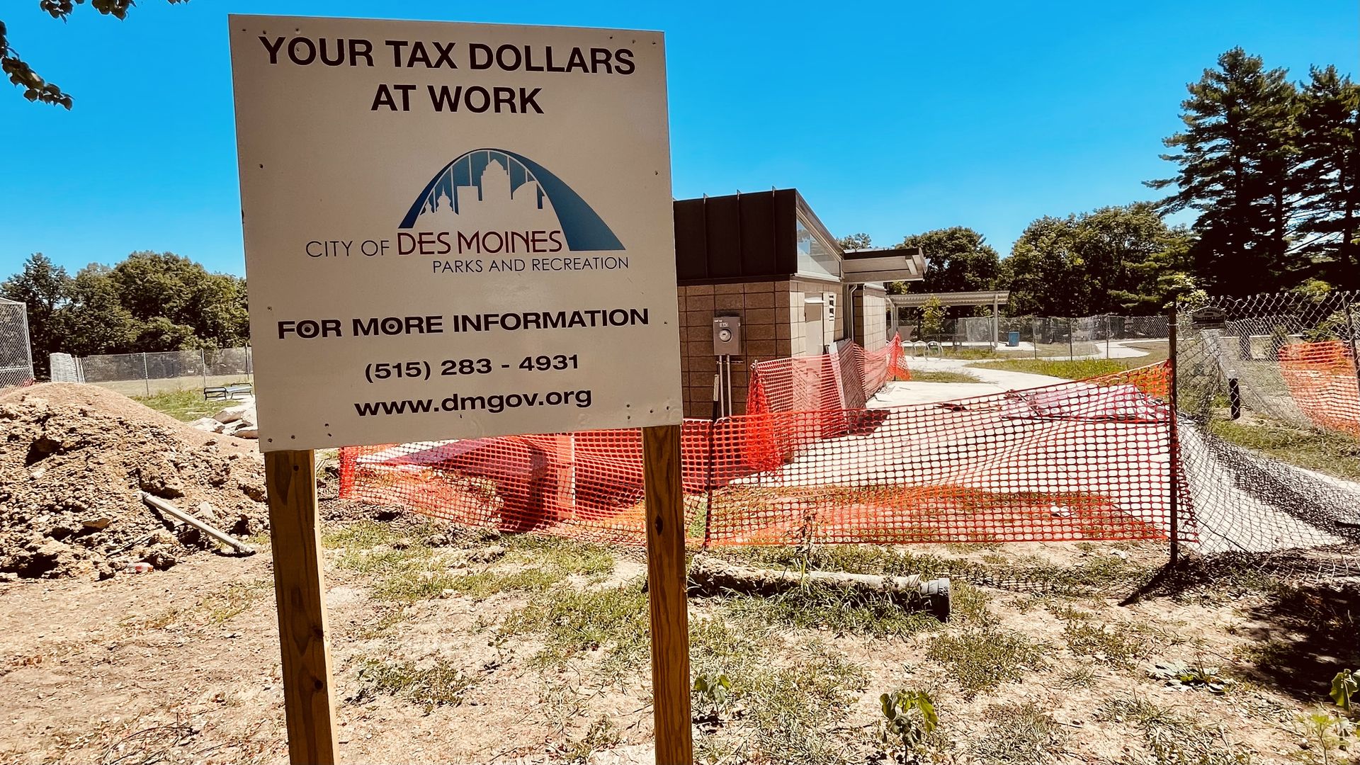 Hold your pee. The completion of this bathroom at Des Moines' Witmer Park is more than 70 days late. (This is how it looked a week ago.) Photo: Jason Clayworth/Axios