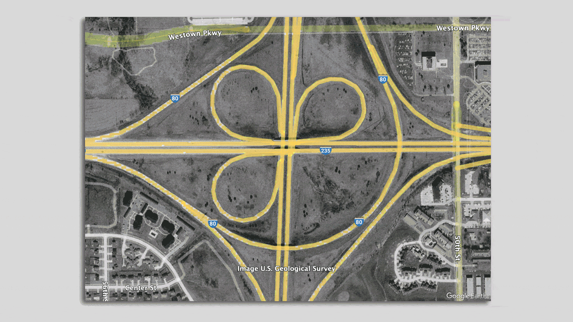 A gif showing the changes between the West Mixmaster from 1985 to July 2022. Screenshots via Google Earth