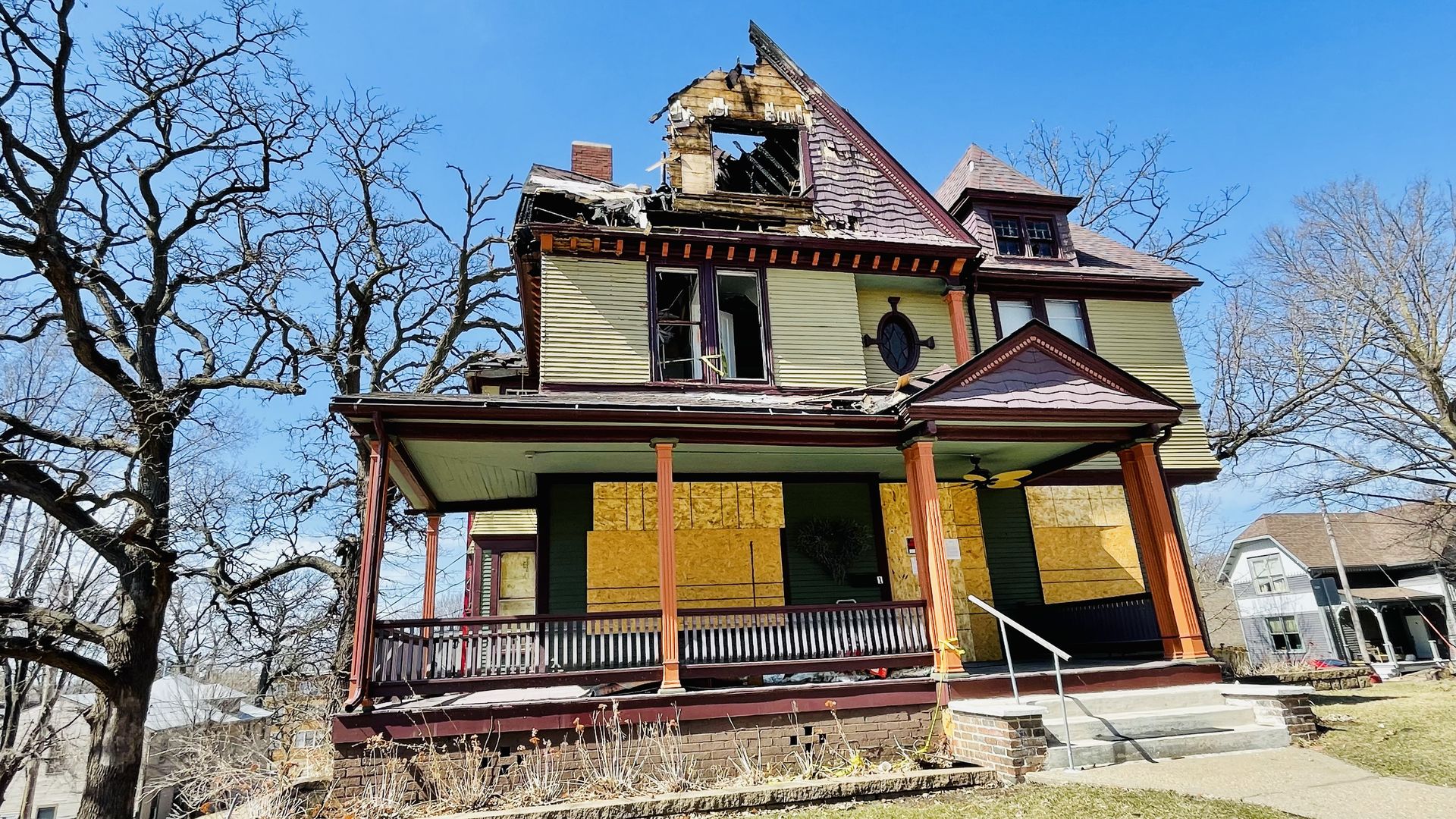 Catch up fast: The 2-½ story home was badly damaged in a November fire. There were no working smoke alarms and a cause has not been determined, but there is no reason to believe it was intentionally set, DSM fire captain Chris Clement tells Axios.