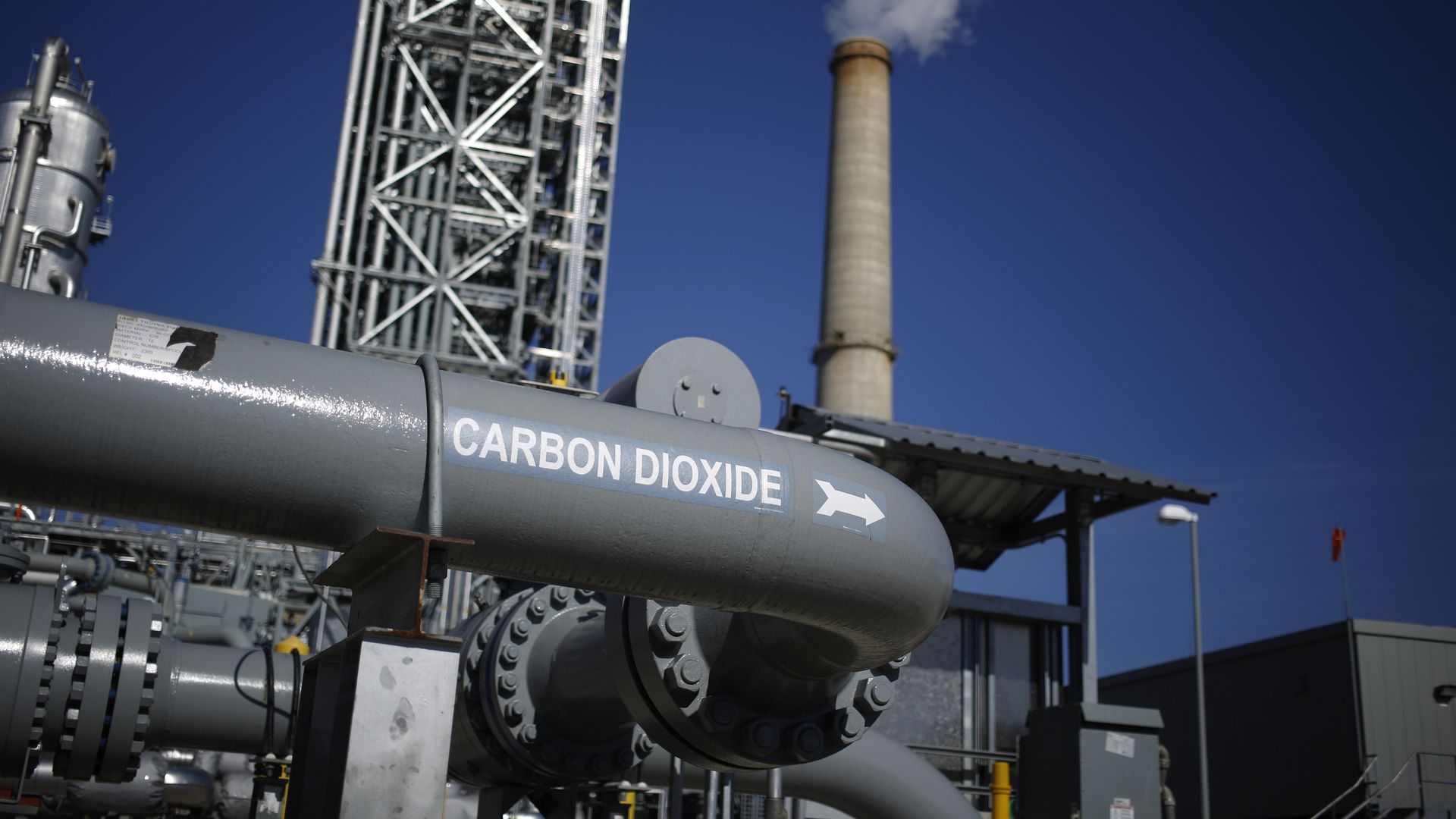 A pipe that's part of the Petra Nova carbon capture project in Thompsons, Texas. Photo: Luke Sharrett/Bloomberg via Getty Images