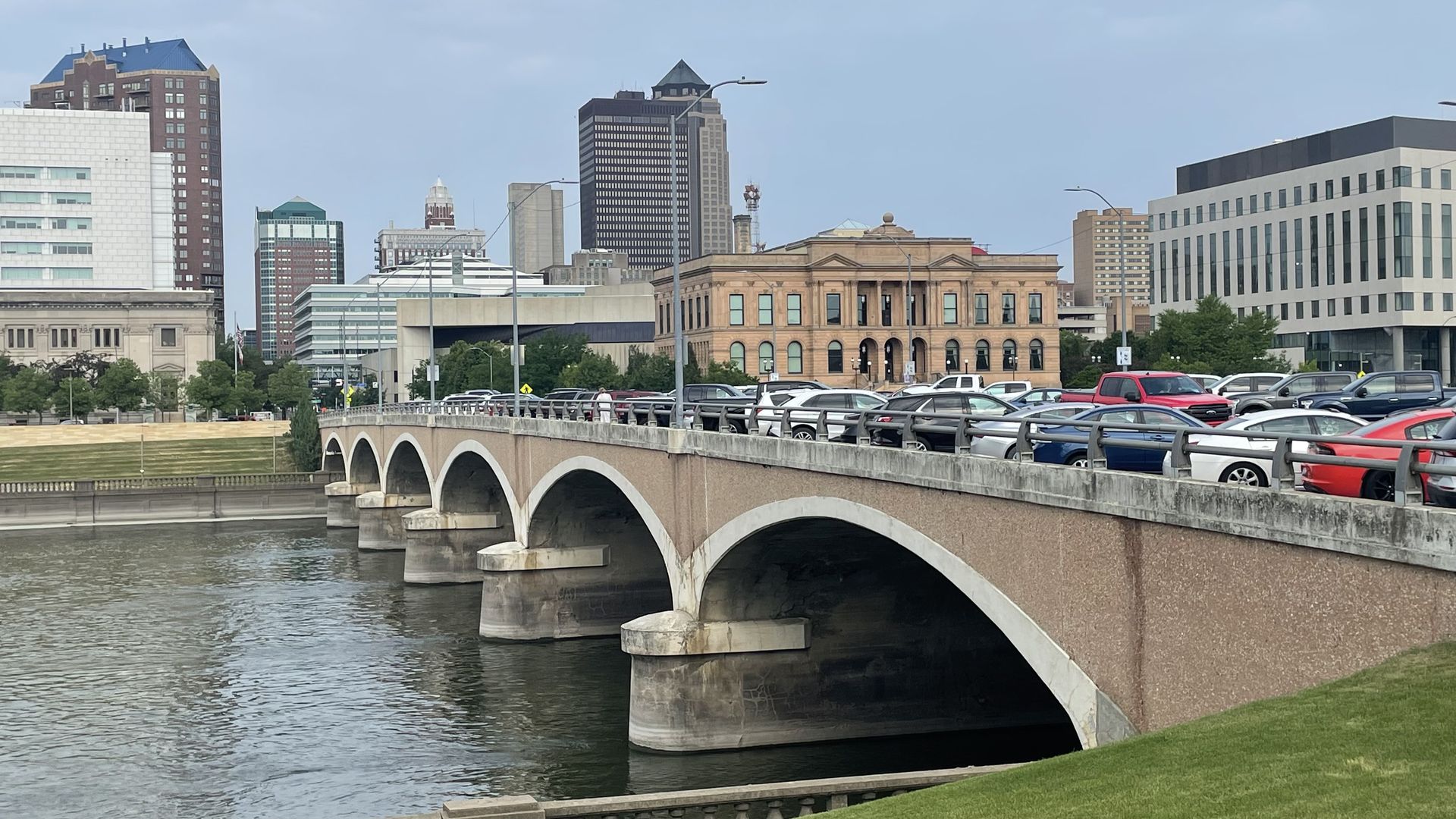 The Walnut Street Bridge has a lane of traffic in each direction and includes 88 free parking spots. Photo: Jason Clayworth/Axios