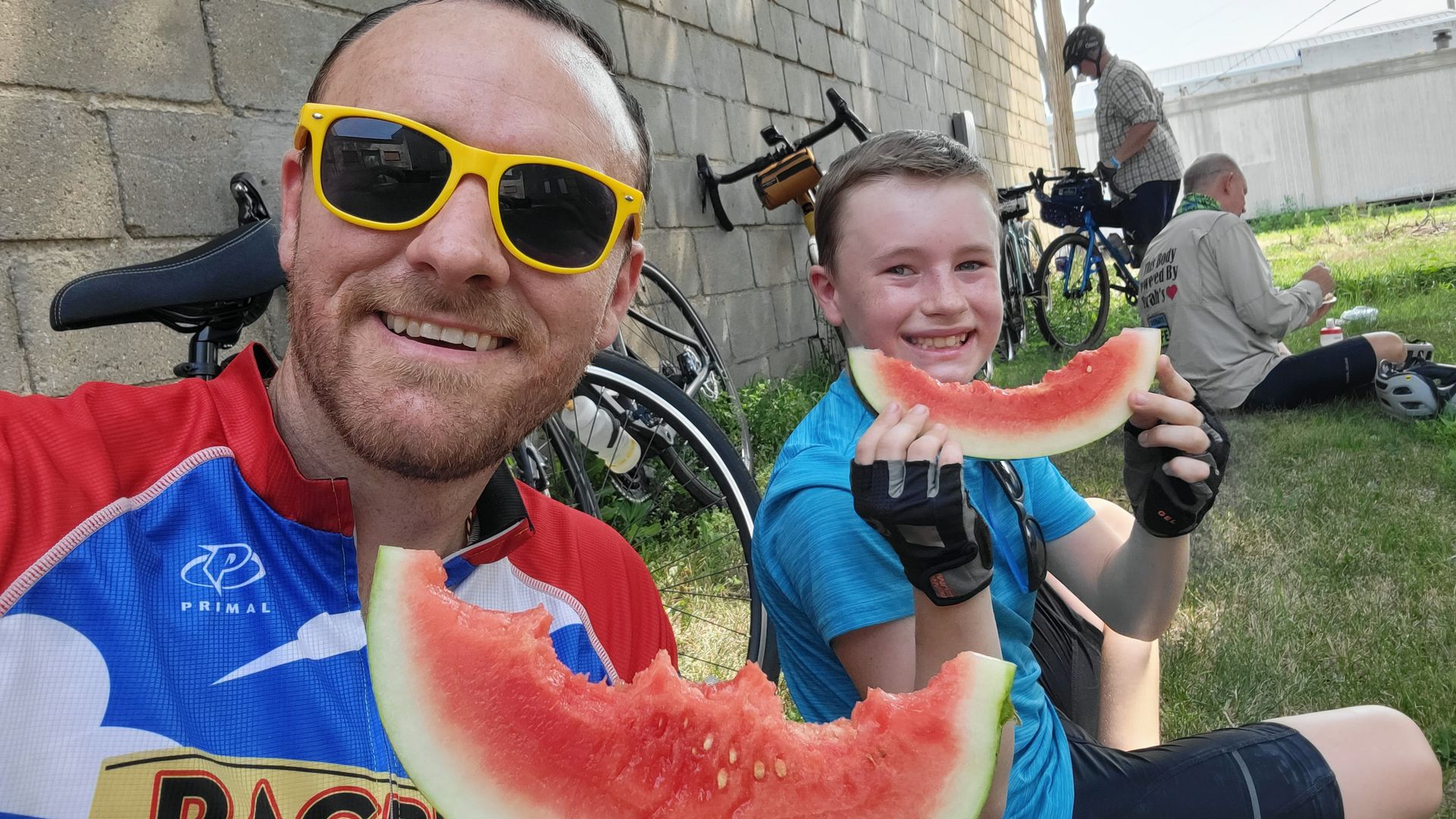 Eric Doll and his son Gavin, 10, participated in this year's RAGBRAI. Photo: Courtesy of Eric
