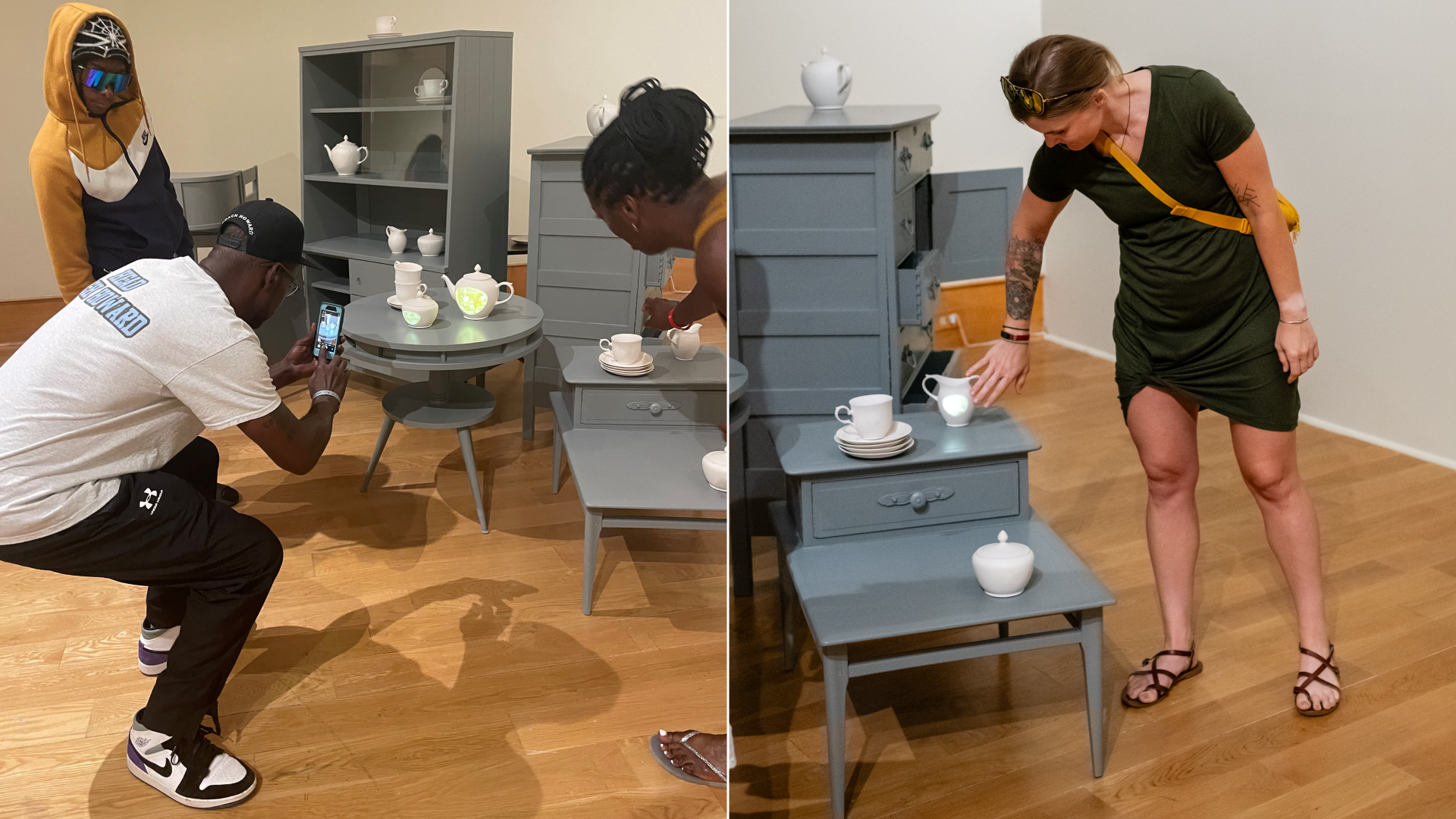 Patrons interact with "Underneath Everything with Family." Photo: Brittany Brooke Crow, Photo: Courtesy of Des Moines Art Center