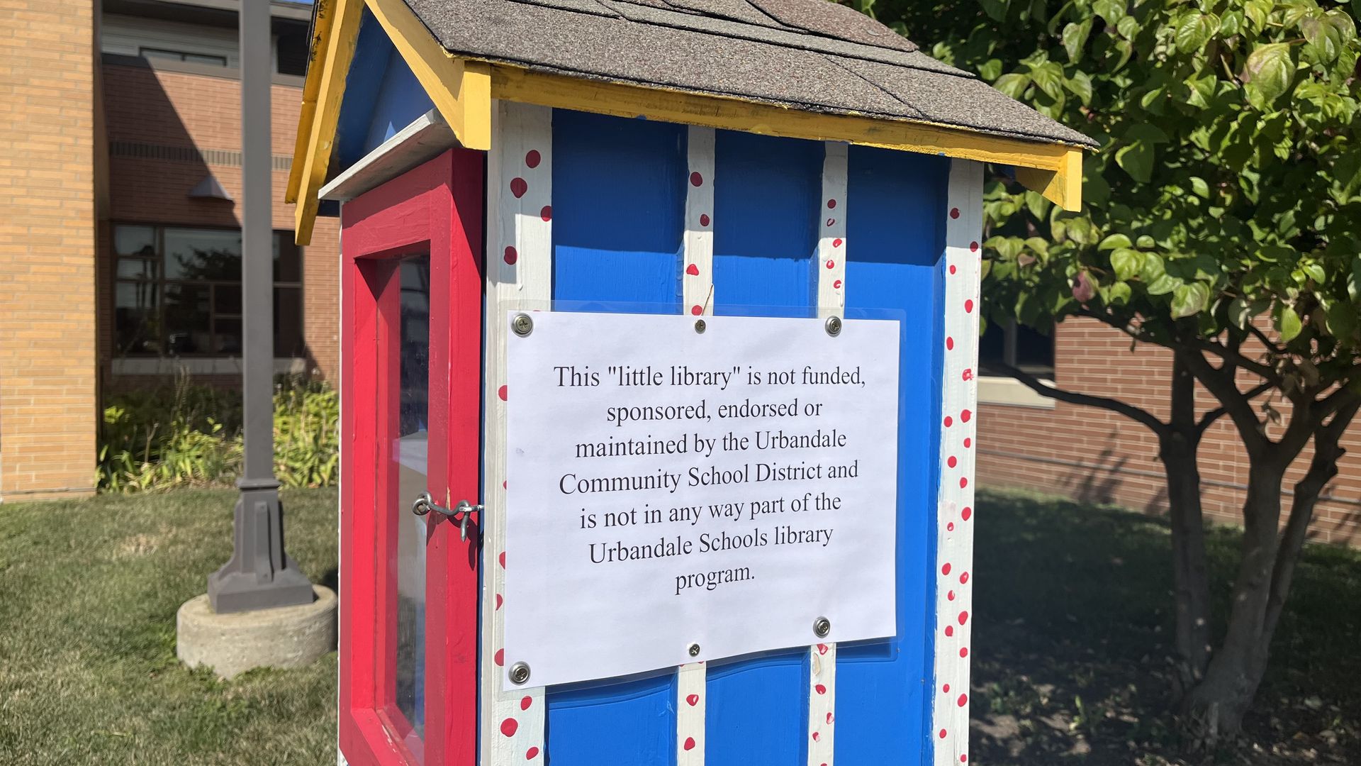 The little library outside Webster Elementary. Photo: Linh Ta/Axios