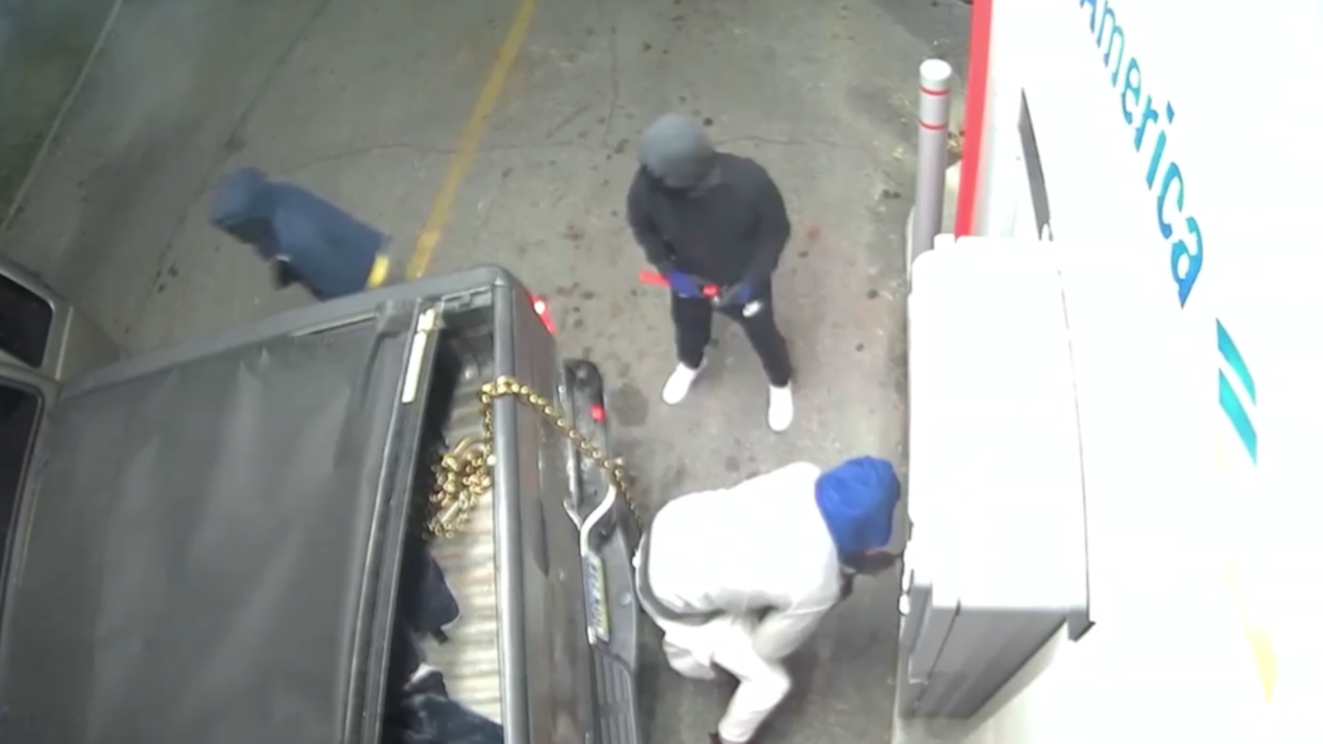 Surveillance cameras at an ATM in DSM about three years ago captured footage of a burglary that used a stolen truck and tow chains. Photo: Courtesy of DMPD