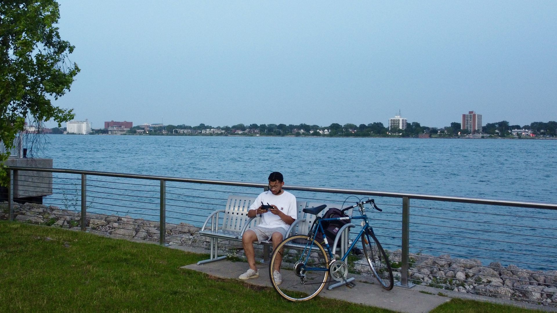 The riverwalk is a great place to ride during evenings when there's not much pedestrian traffic. Drone selfies: Samuel Robinson/Axios