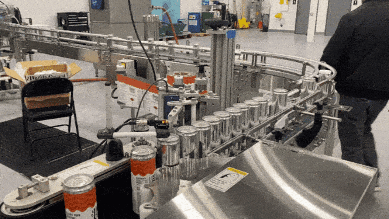Highly Casual cans get labels at a site formerly home to the Gibraltar Trade Center. Video: Annalise Frank/Axios