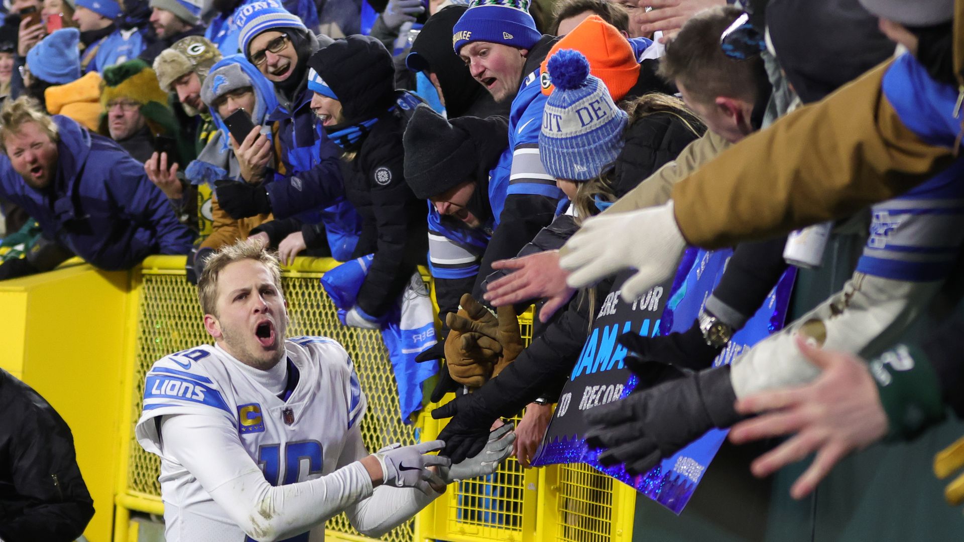 Jared Goff of the Lions greets fans after defeating the Green Bay Packers at Lambeau Field. Photo: Stacy Revere/Getty Images