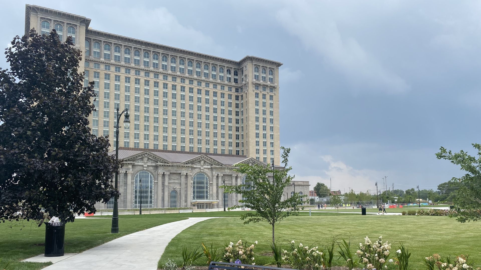 Michigan Central Station viewed from Roosevelt Park. Photo: Annalise Frank/Axios