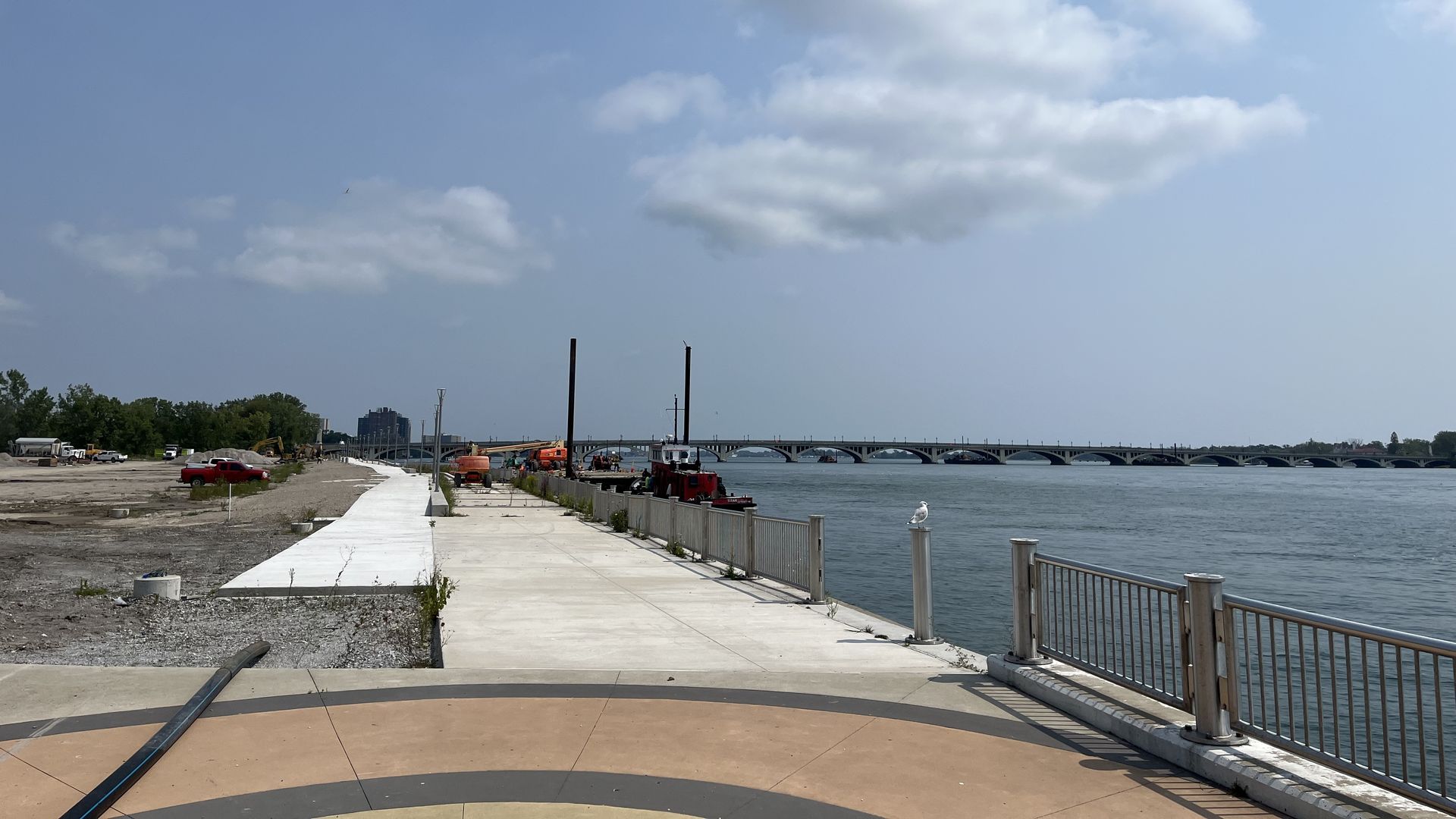 - Once the new pathway is open, the riverwalk will connect directly to the Belle Isle bridge and to nearby Gabriel Richard Park.