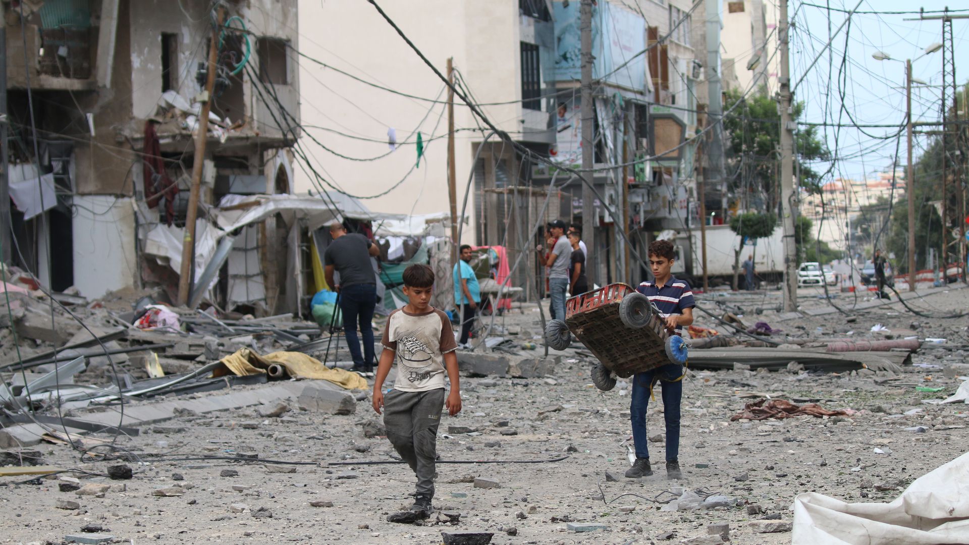 Palestinian citizens inspect damage to their homes caused by Israeli airstrikes on Monday in Gaza City, Gaza. More than 700 people have died in Gaza after Israel launched sustained retaliatory airstrikes after Saturday's attack by Hamas. Photo: Ahmad Hasaballah/Getty Images