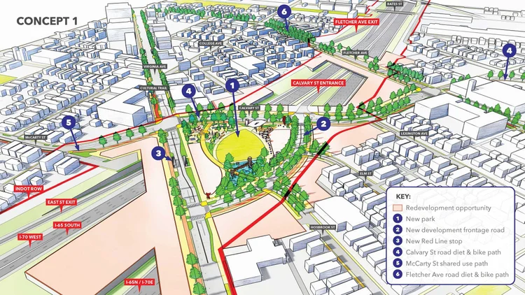 Local leaders have released three proposals to reconnect neighborhoods and reclaim development space by capping part of the I-65/I-70 Inner Loop.