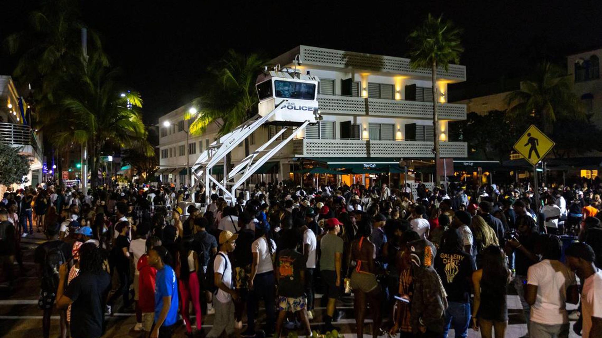 Crowds gather at Ocean Drive and Eighth Street during spring break in South Beach on Saturday. Photo: D.A. Varela/Miami Herald/Tribune News Service via Getty Images