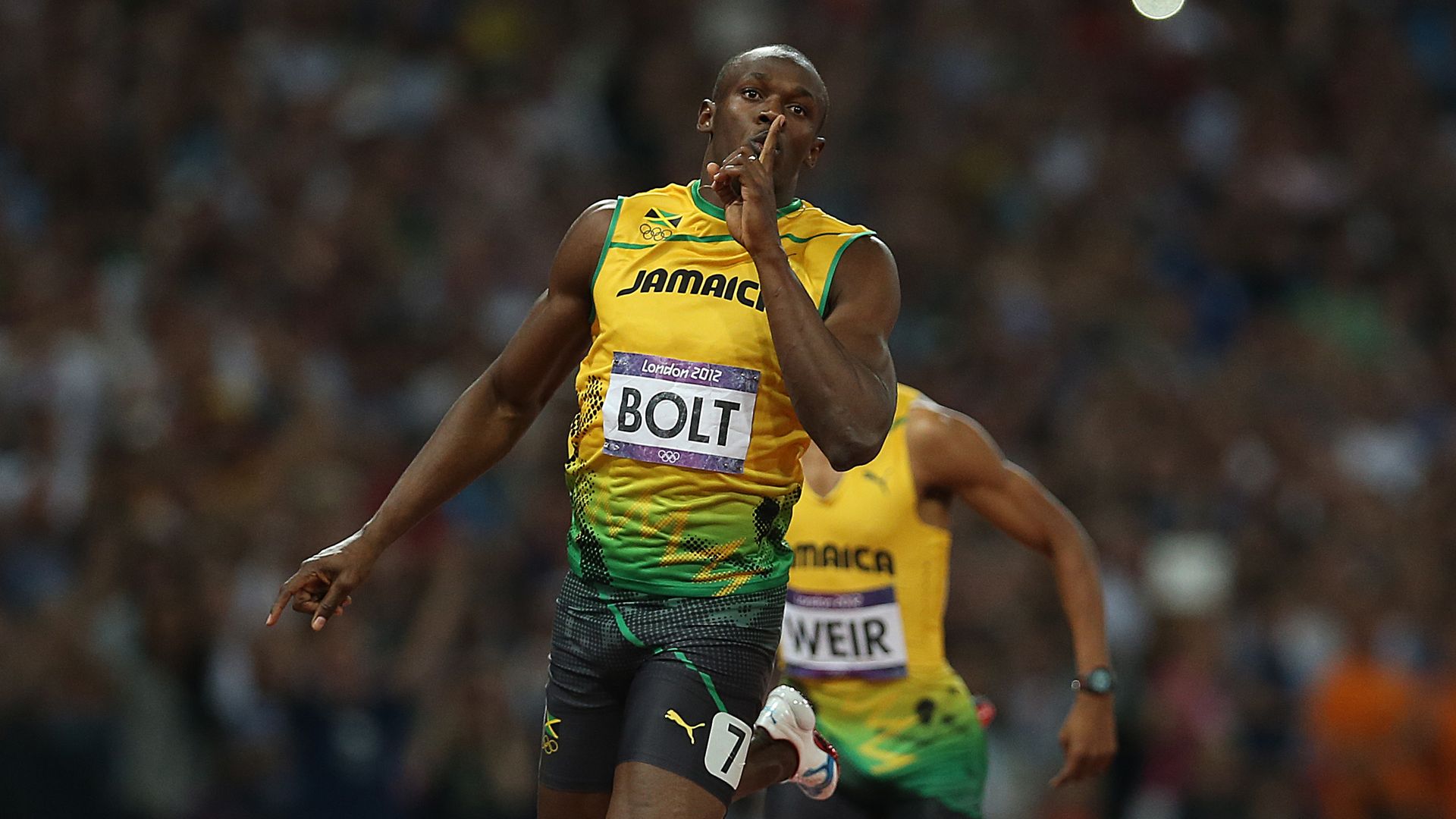 Usain Bolt celebrates as he wins gold in the Men's 200-meter final in the 2012 Olympics. Photo: Ian MacNicol/Getty Images
