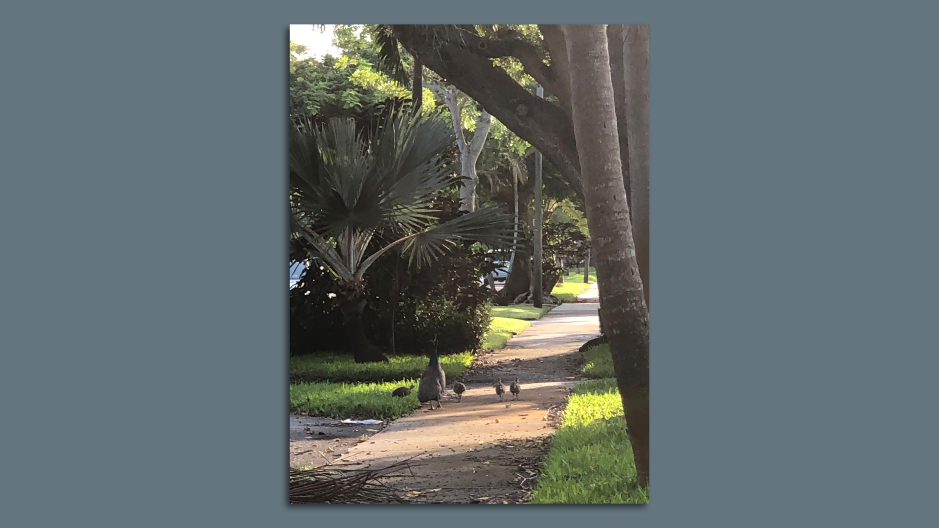 Peacocks in El Portal. Photo: Deirdra Funcheon/Axios