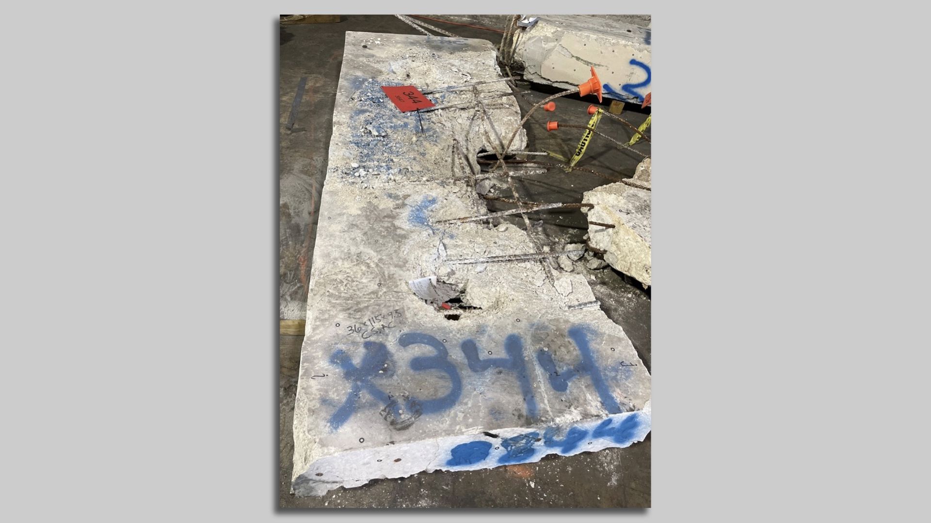 A concrete slab shows that the spacing of bars within it was wider than called for by design drawings. Photo: NIST