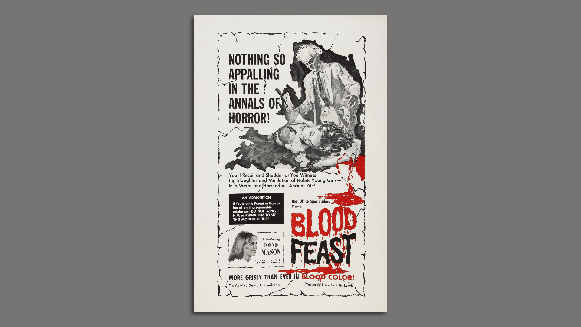A movie poster for "Blood Feast." Photo: LMPC via Getty Images